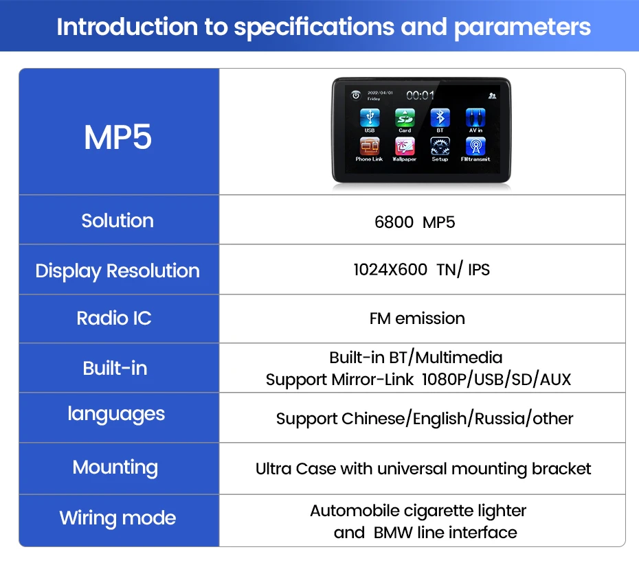 Support Mirror-Link 1080P/USB/SD/AUX