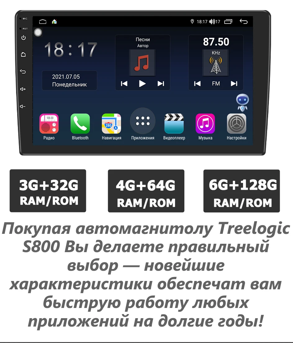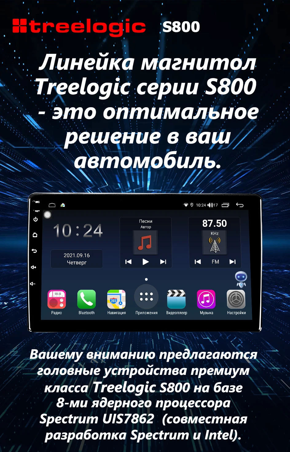 Автомагнитола treelogic S800,головное устройство, мощный 8-ядерный процессор Spreadtrum UIS7862, QLED экран, DSP, 4G интернет, голосовое управление, чип-усилитель TDA7851, радиочип NXP6686, DSP,GPS