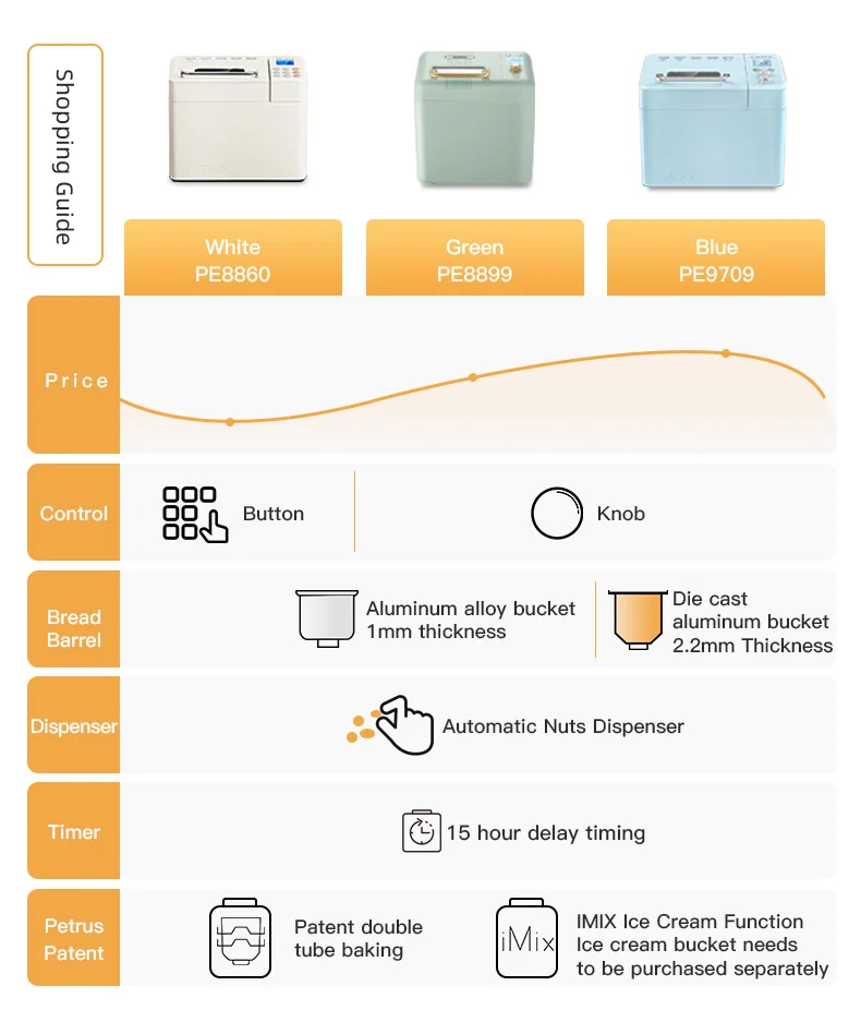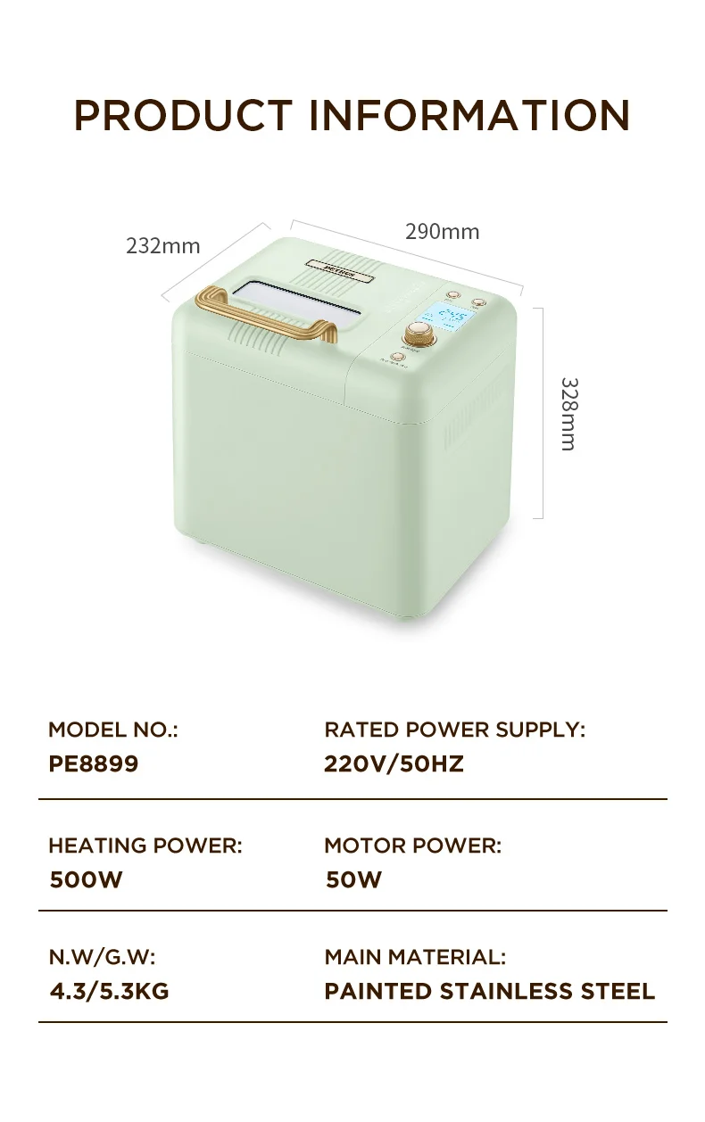 Автоматическая хлебопечка Петрус, Настраиваемые настройки, мороженое IMIX, автоматический дозатор фруктовых орехов, размер 2 булавки PE8899