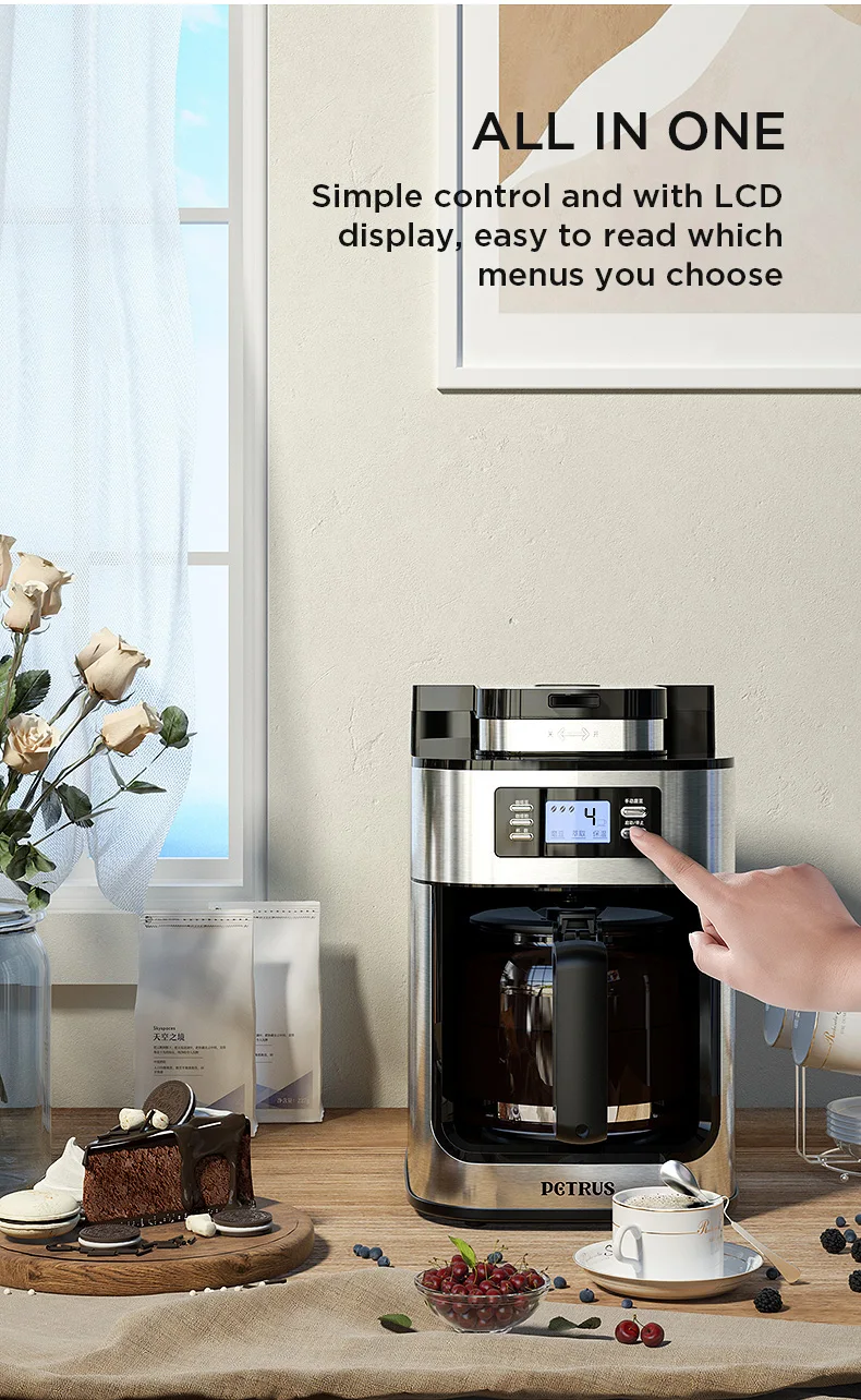 Автоматическая кофемашина Петрус, капельная Кофеварка из нержавеющей стали, 10 чашек, со встроенной кофемолкой