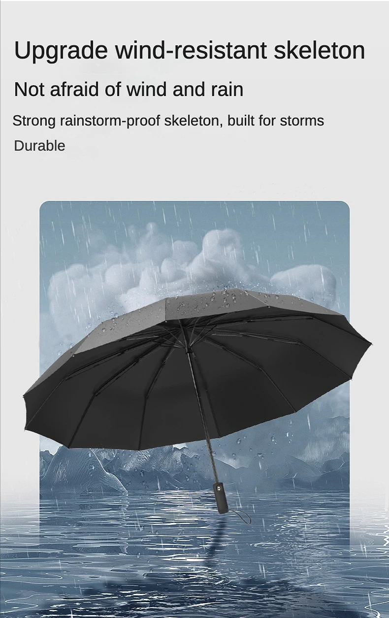Автоматический большой складной зонт, усиленный Зонт с 12 ребрами, водонепроницаемый, ветрозащитный, прочный, солнечный и дождливый, для мужчин