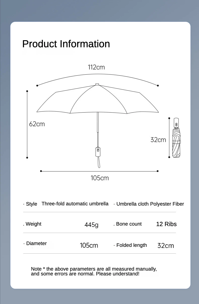 *. Функция автоматического открытия и закрытия одной кнопкой может помочь вам легко и быстро открыть ветрозащитный зонт, чтобы не подвергаться воздействию дождя, а работать одной рукой удобнее.
