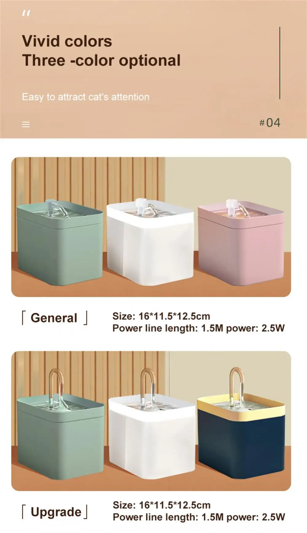 [Стимулирует питье]: пополняющая воду помогает предотвратить появление у домашних животных заболеваний мочеиспускания и почек. Этот фонтан имеет три различных режима питья. Он предоставляет вашему питомцу больше выбора и привлекает их к питью больше воды.