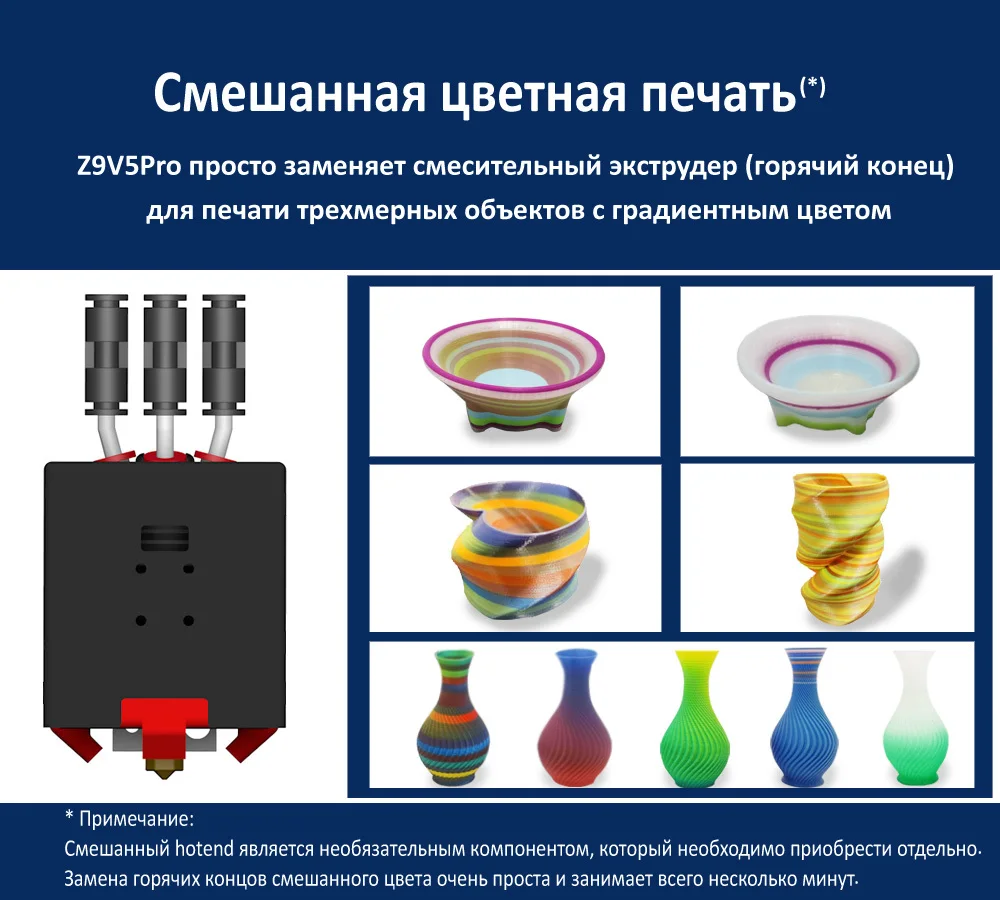 • Обновление 4-IN-1-OUT Mix Color Hotend M4V6:Поддержка постепенной гибридной печати.
