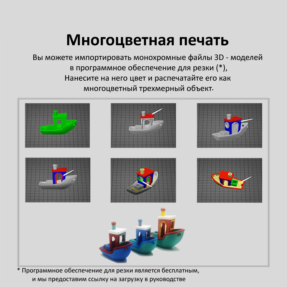 • Поддержка преобразования монохромных трехмерных моделей в многоцветные трехмерные модели в программном обеспечении для резки.
