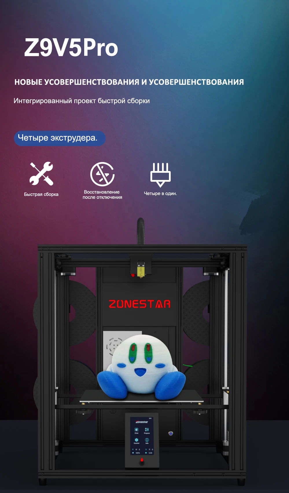 • Оснащен 4 экструдерами Titan и 4-IN-1-OUT гибридным hotend, способным печатать многоцветную 3D - печать.