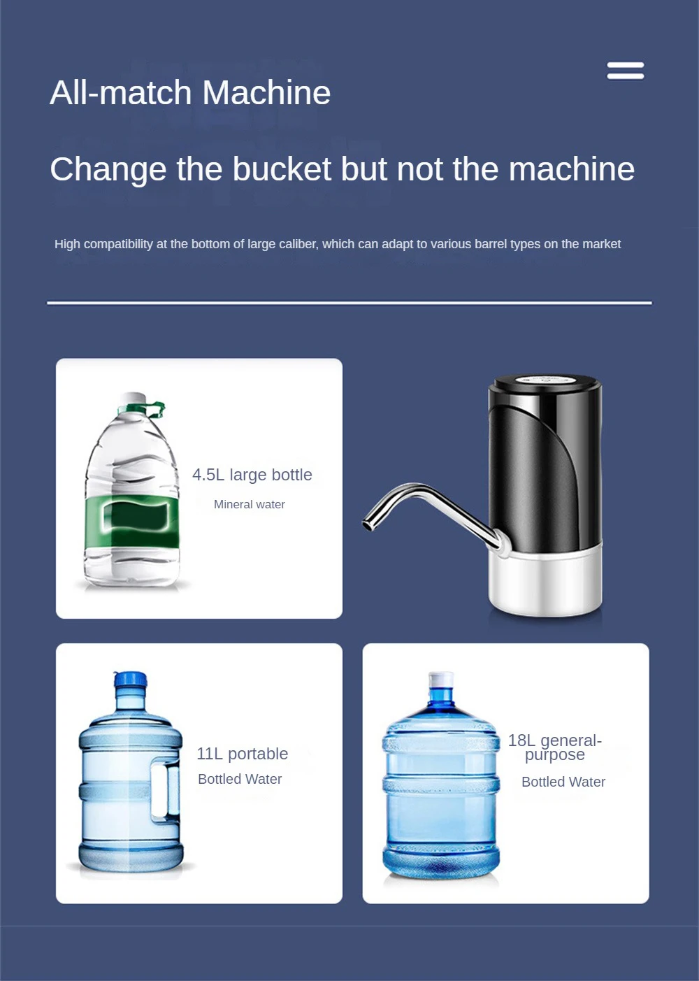 Автоматическая бутылка с водой Электрический дозатор насоса для питьевой воды Портативный USB-зарядка бутылки Водяной насос 4,5-19 литров
