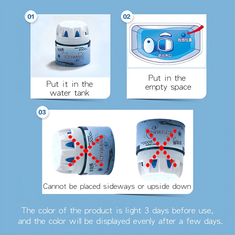 Как использовать: Поместите кусок в резервуар для воды унитаза, дайте ему стоять вертикально, подождите, пока вода станет синей, тогда он сможет содержать унитаз в чистоте и удалять запах.