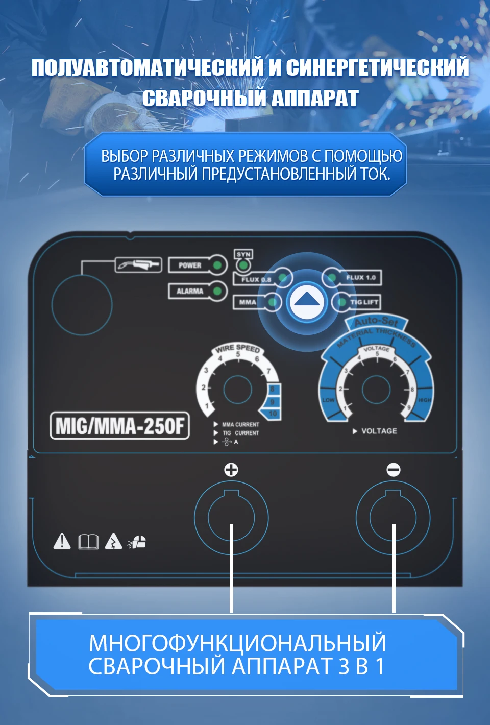 Режим машины: MMA, MIG,LIFT TIG