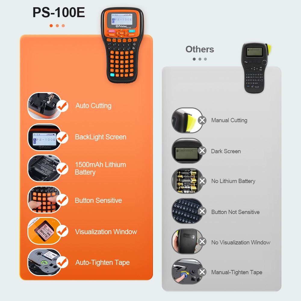 Labelwell Портативная Этикетировочная машина PS100E Автоматическая резка этикеток Замена для Brother P Touch Этикетировочный принтер для TZ231 Fx231 Этикеточная лента