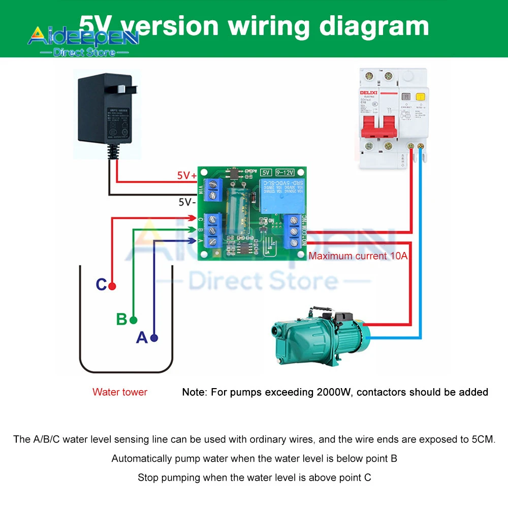 Функция модуля: когда уровень воды ниже, чем зонд B, вода автоматически перекачивается. Прекратите накачивать, когда уровень воды достигает зонда C.