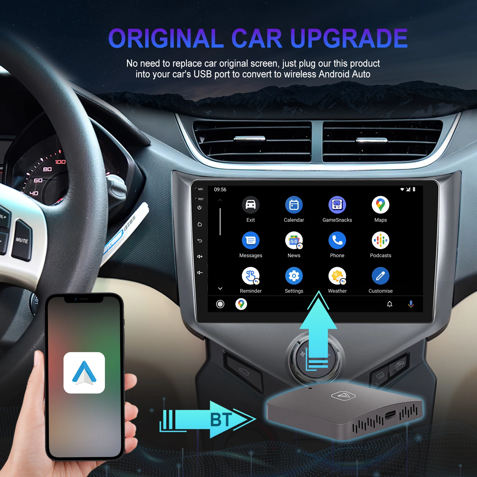 Если ваш автомобиль поддерживает проводную Android Auto, но вы хотите использовать беспроводную Android Auto, этот продукт-отличный выбор для вас.