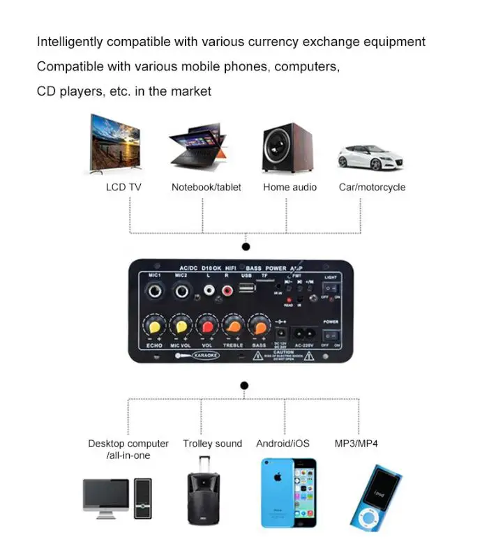 Автомобильный bluetooth цифровой усилитель доска 220 В, 12 В, 24 В постоянного тока, двойной микрофон громкой связи bluetooth карта стерео усилитель сабвуфер усилитель караоке