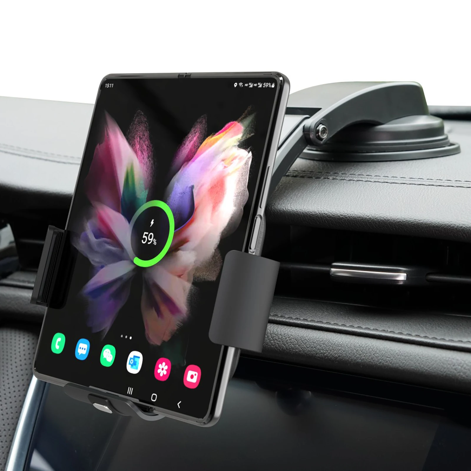 Автомобильное беспроводное зарядное устройство с двойной катушкой, держатель для телефона, 15 Вт, для Samsung Galaxy Z Fold 4 3 2 iPhone 14 13 Pro Max, складной экран, быстрая зарядка