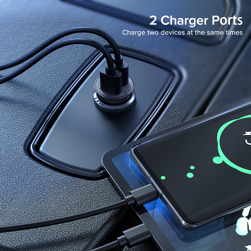 Автомобильное зарядное устройство 2,4 А с двумя USB-портами и функцией быстрой зарядки