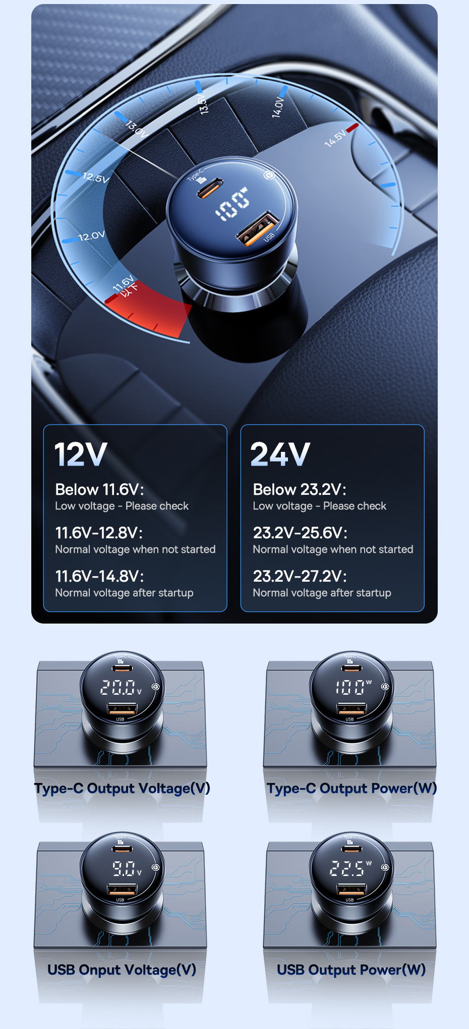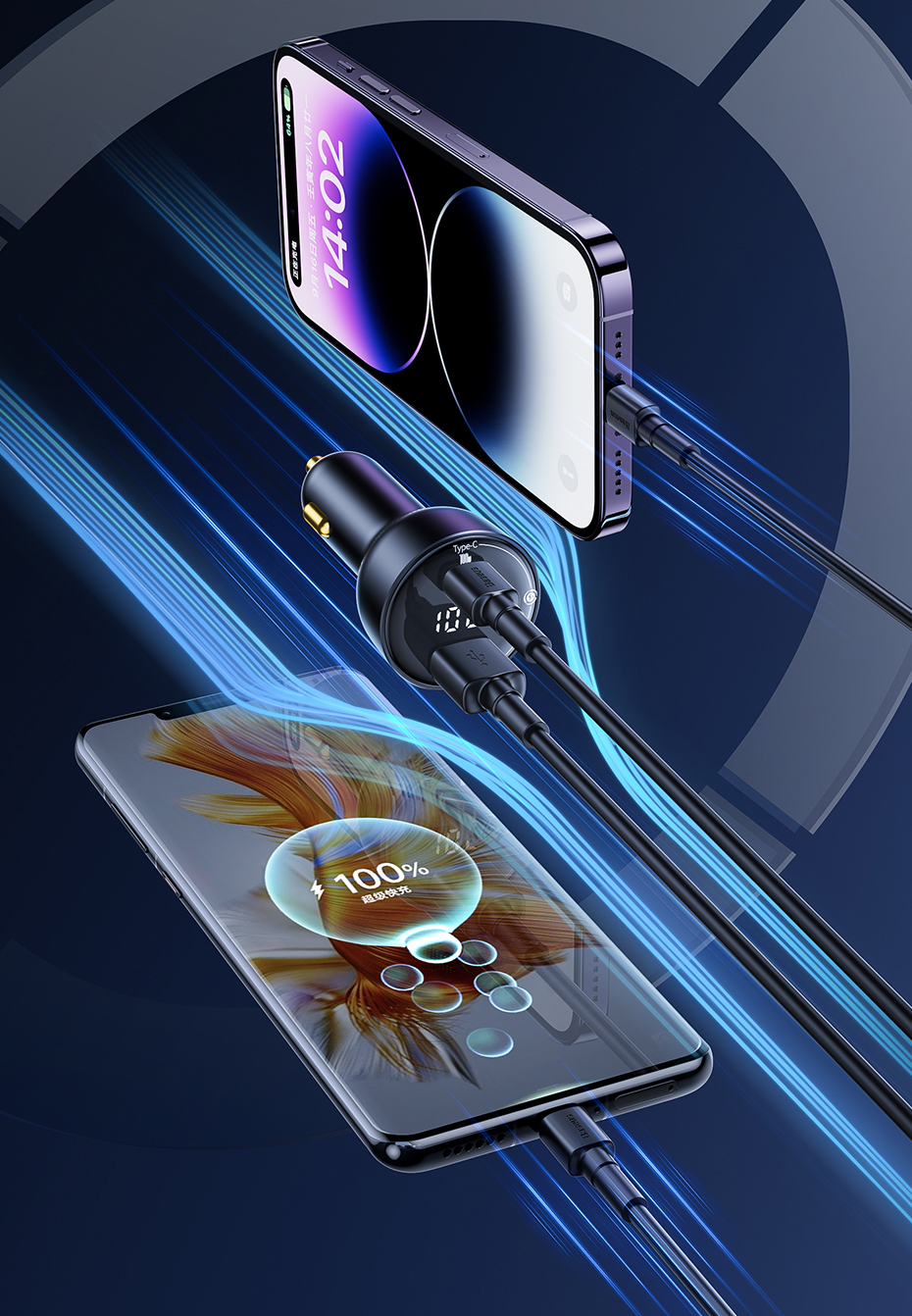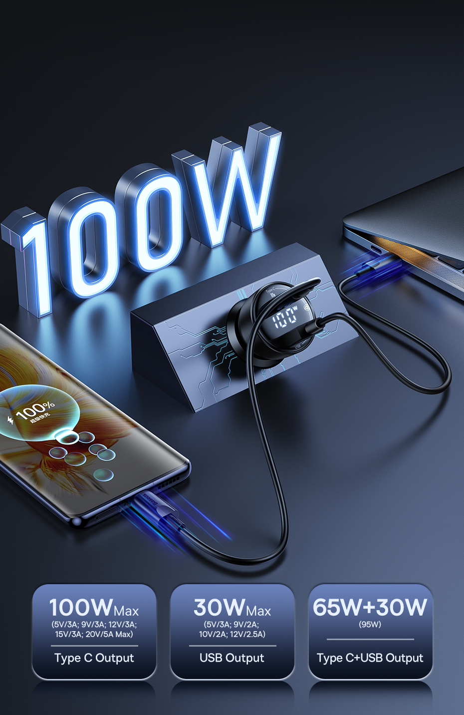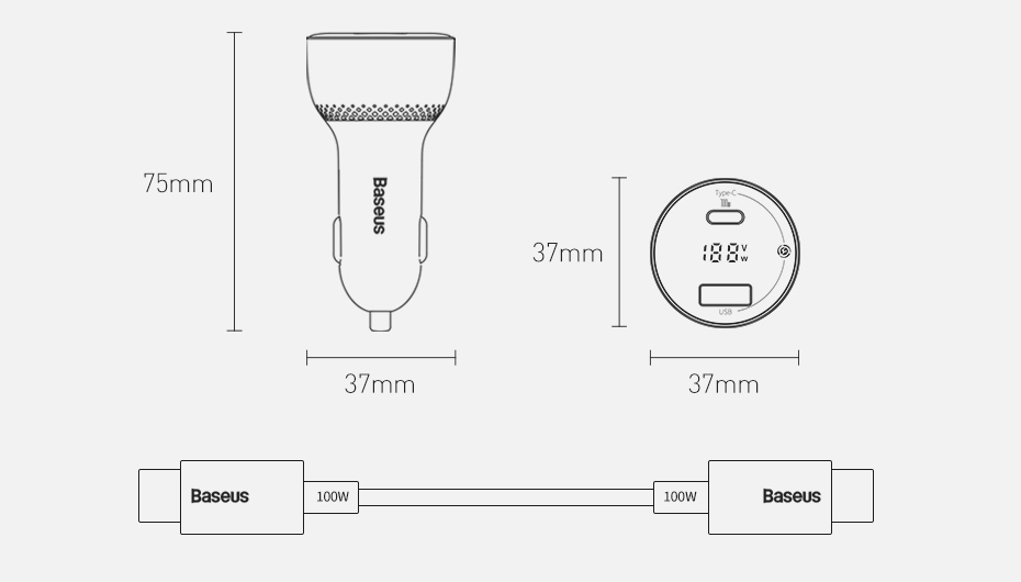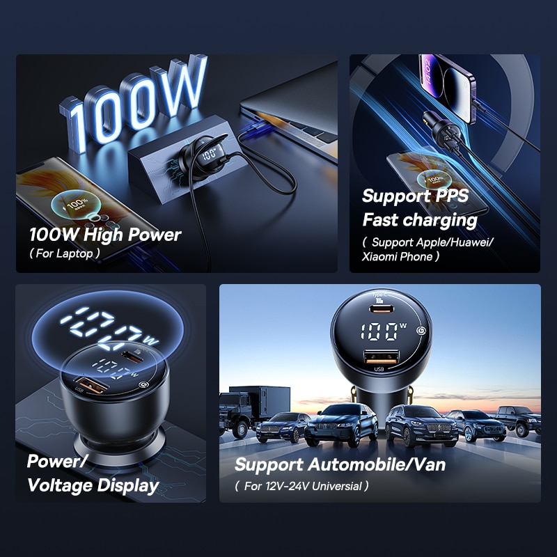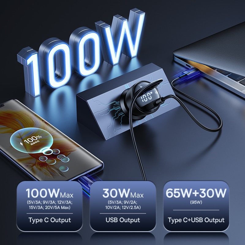Type 100W LED Fast Car Charger