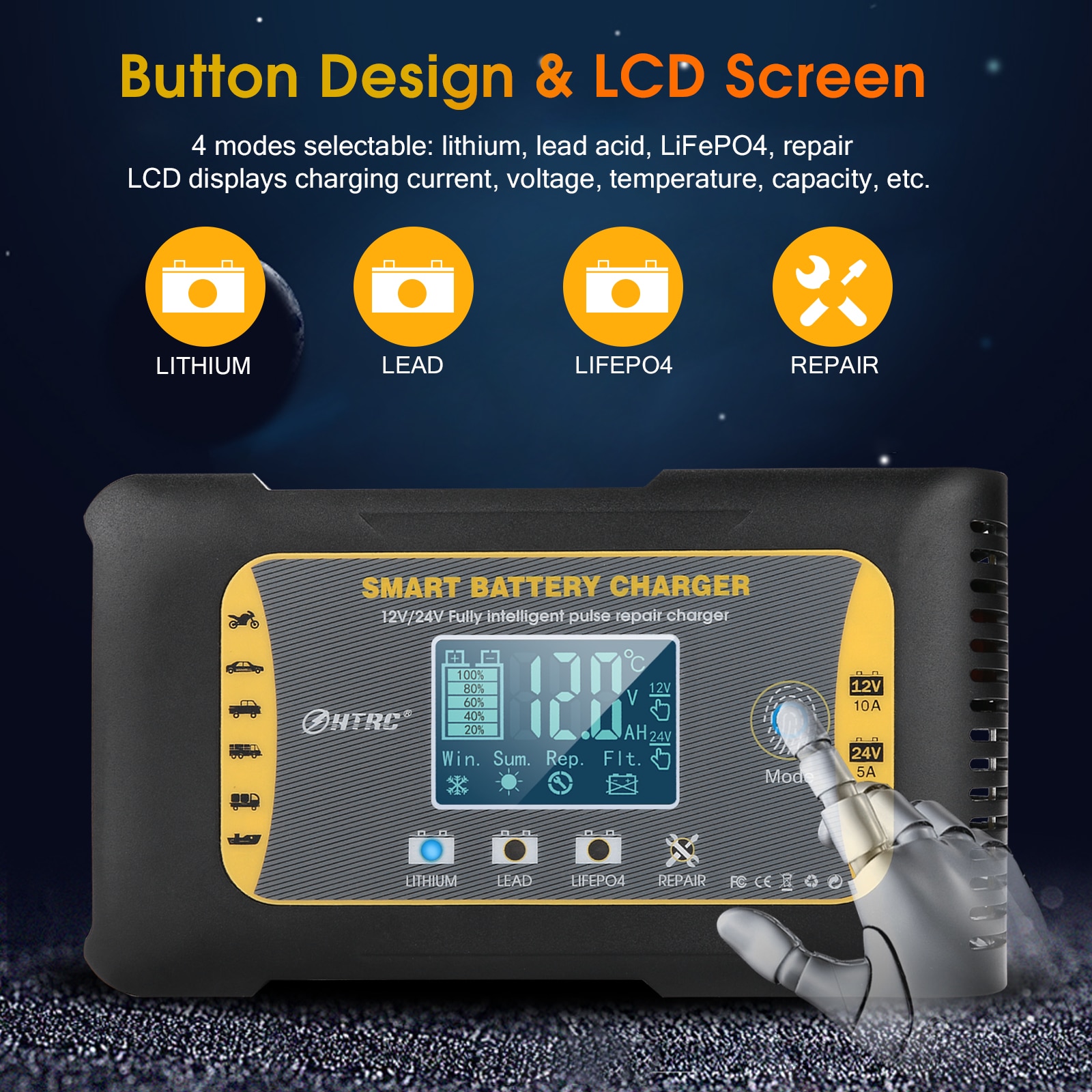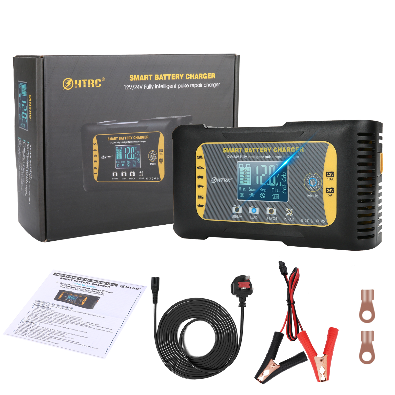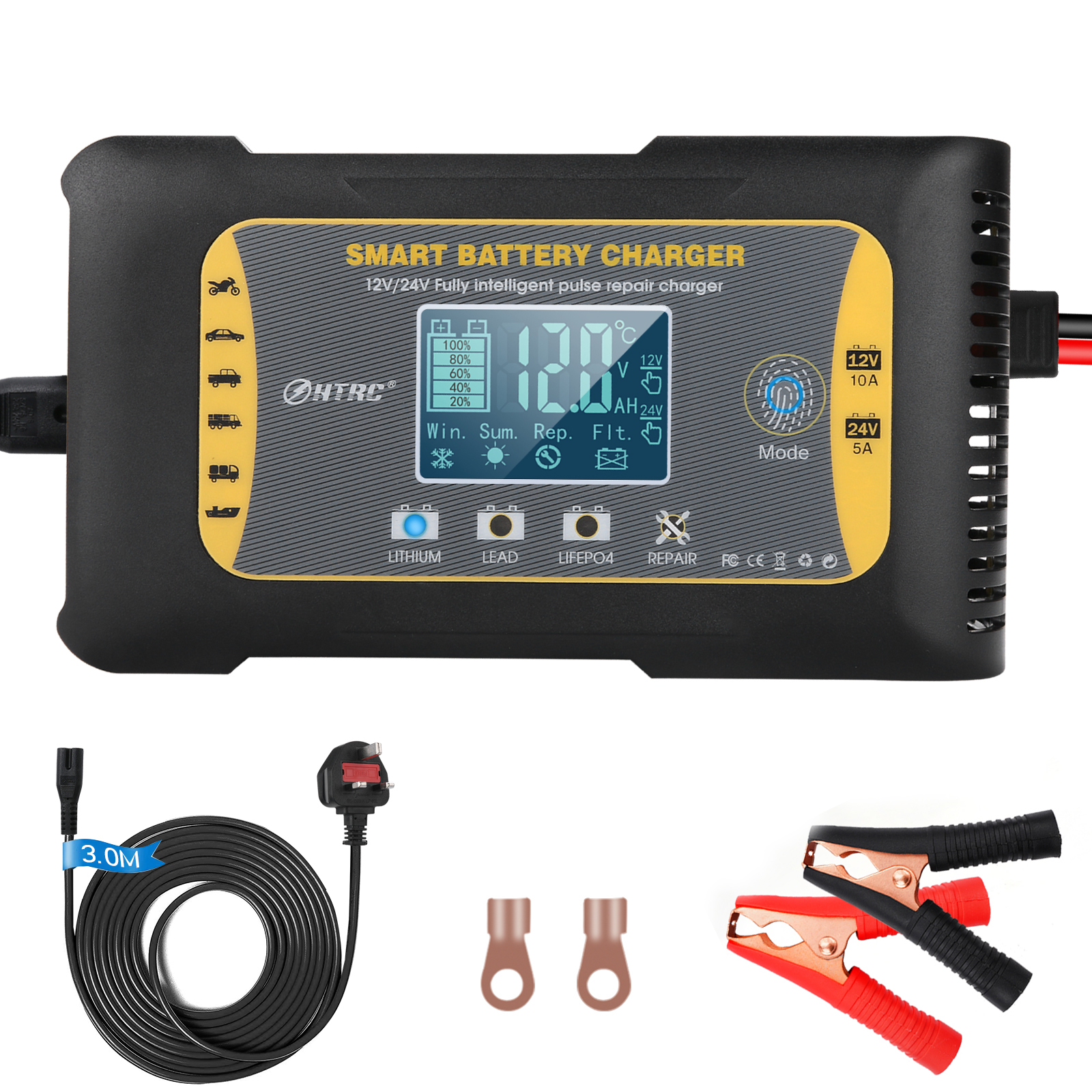 Автомобильное зарядное устройство для аккумуляторов HTRC 12-24 в 10 А Lifepo4, 7-ступенчатое импульсное