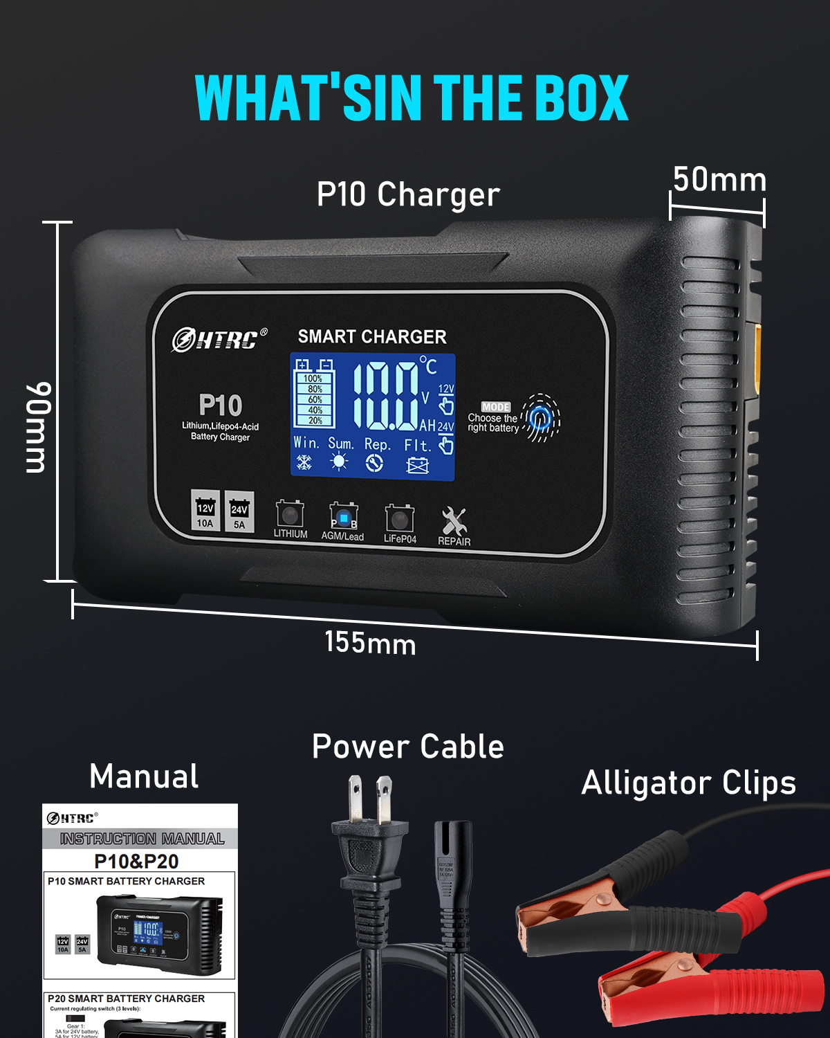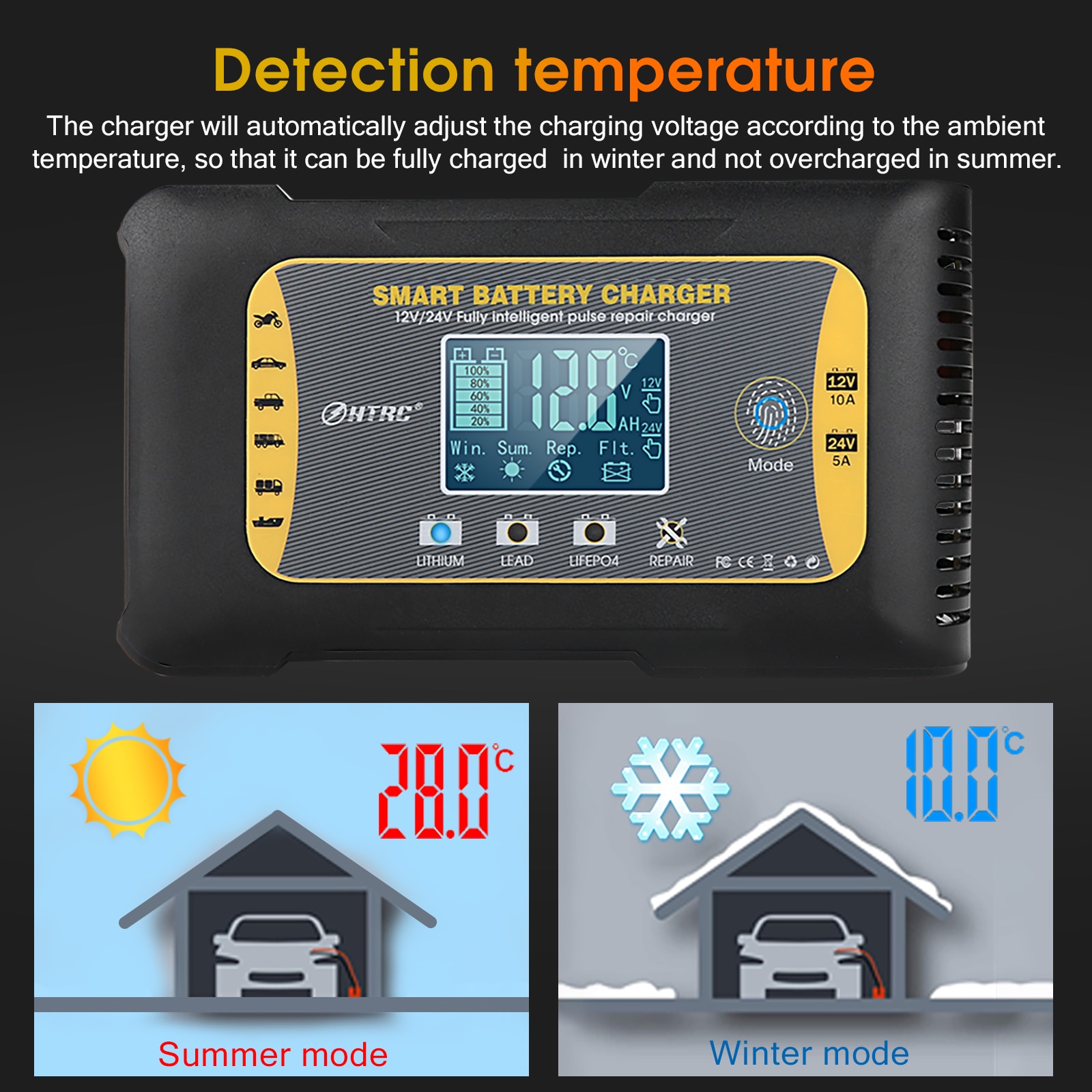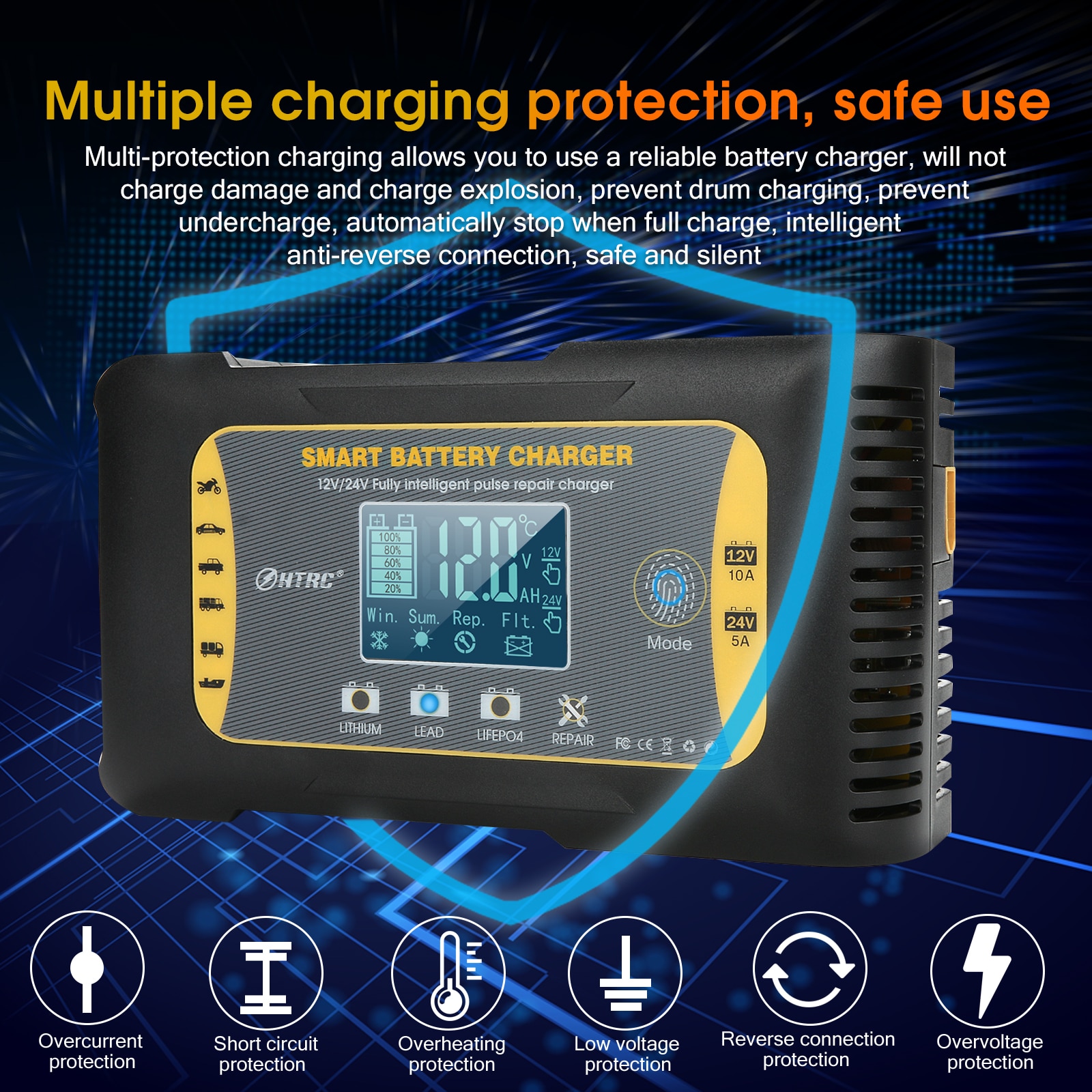 Автомобильное зарядное устройство для аккумуляторов HTRC 12-24 в 10 А Lifepo4, 7-ступенчатое импульсное