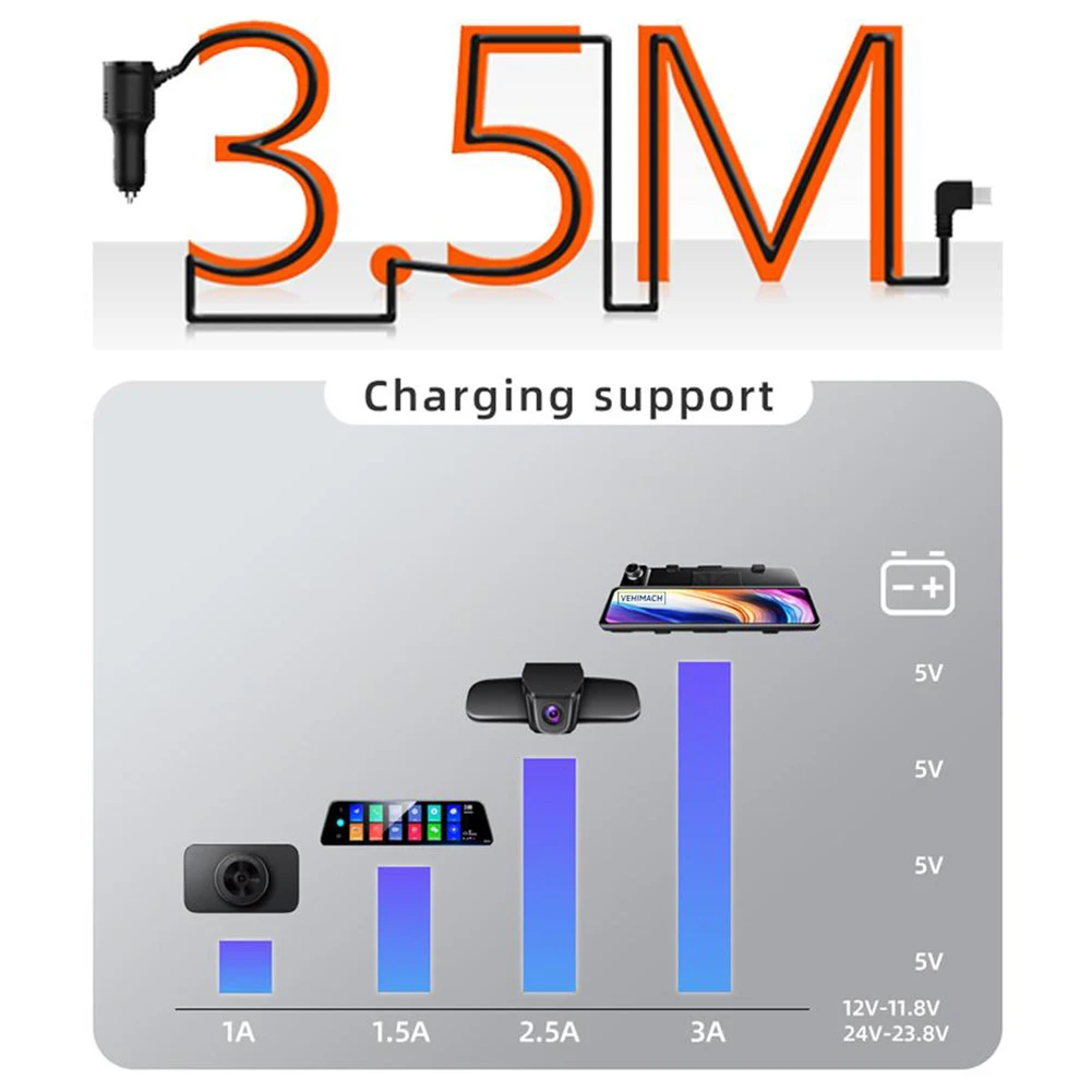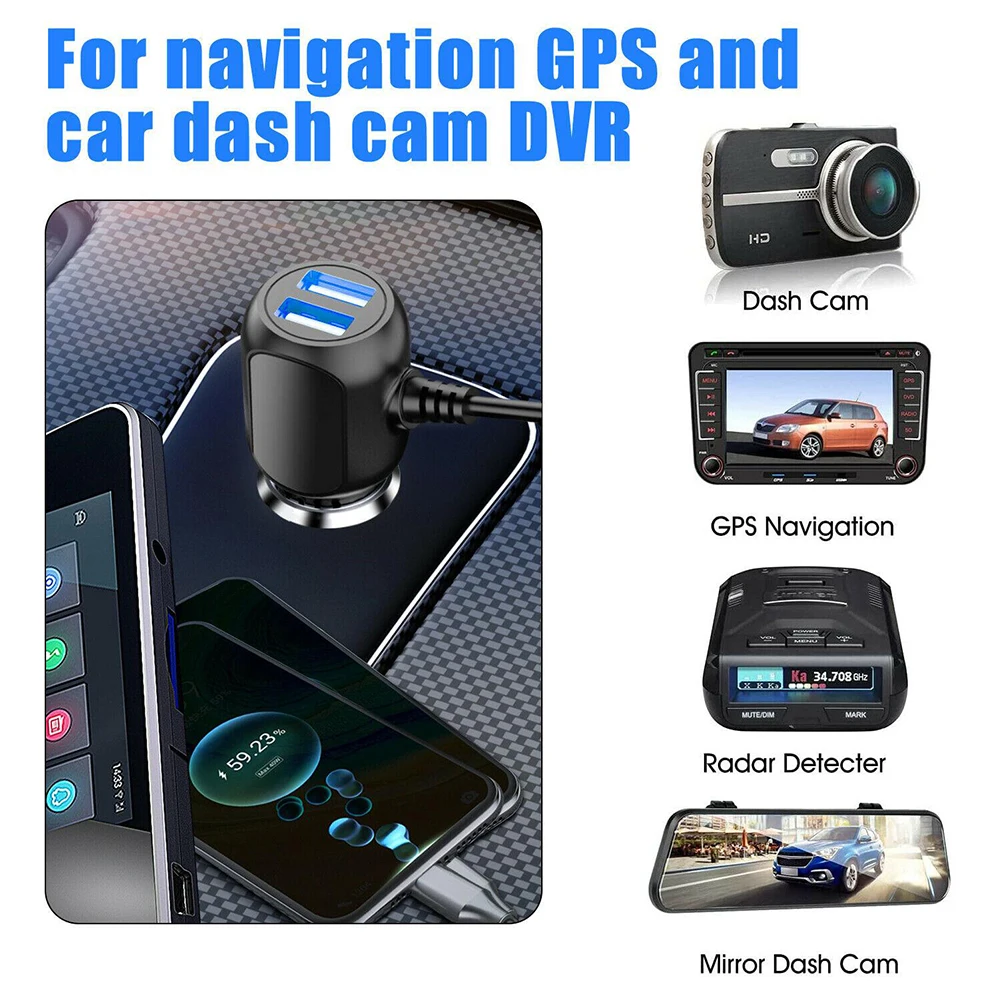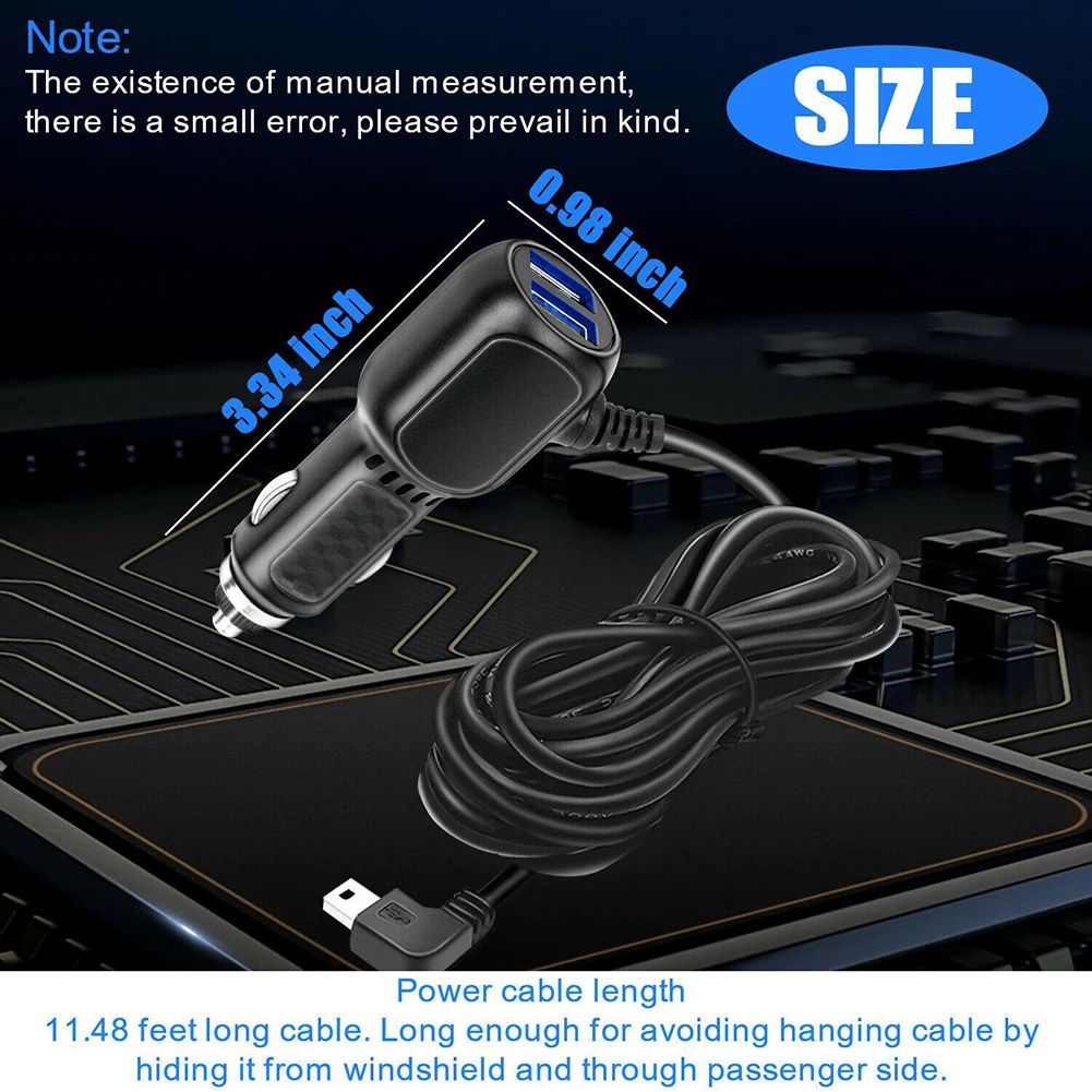 Автомобильное зарядное устройство для видеорегистратора, мини USB кабель футов, шнур питания для видеорегистратора, камеры, GPS, 2 в 1, многофункциональное автомобильное зарядное устройство для автомобиля 12-24 В