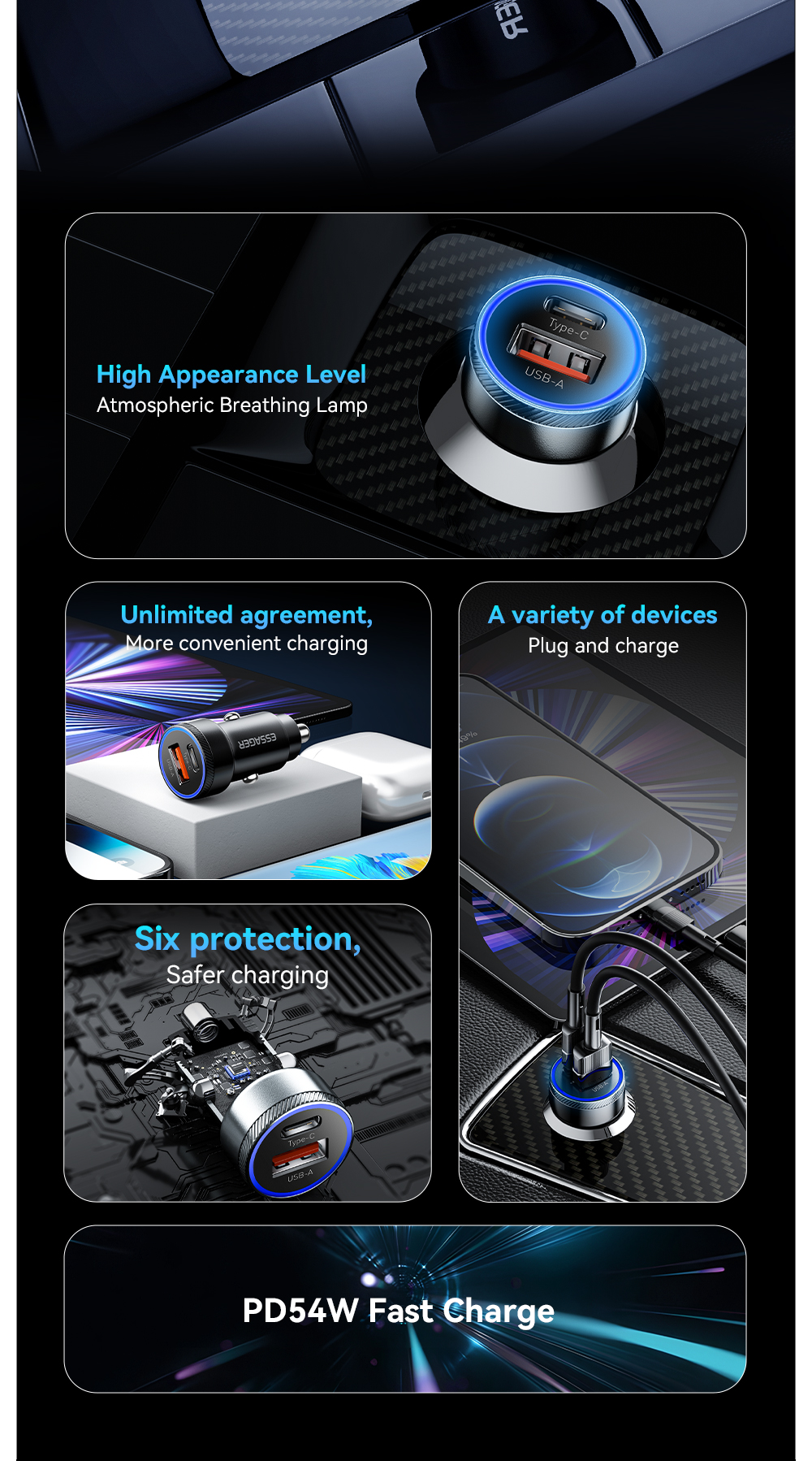 -Название продукта: автомобильное зарядное устройство 54 Вт