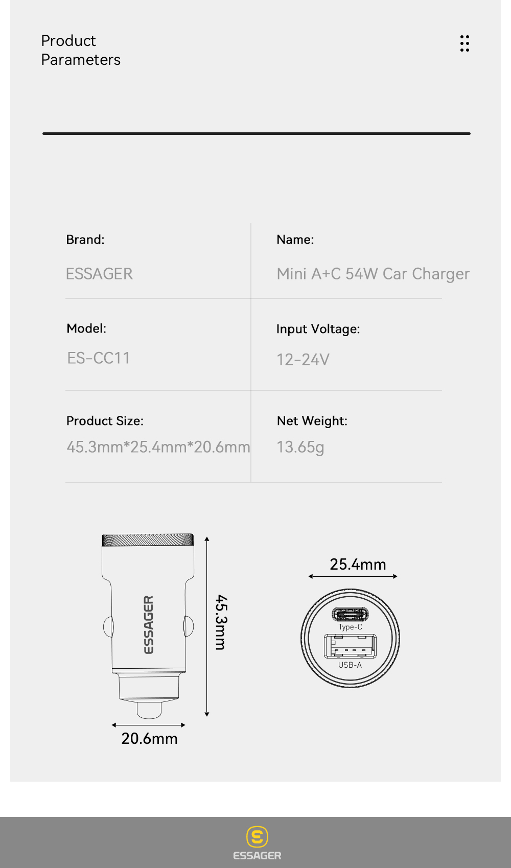 <span class="SnowProductCharacteristics_SnowProductCharacteristicsItem__titleContent__534v9">Номер модели</span> Essager Mini 54W USB Car Charger