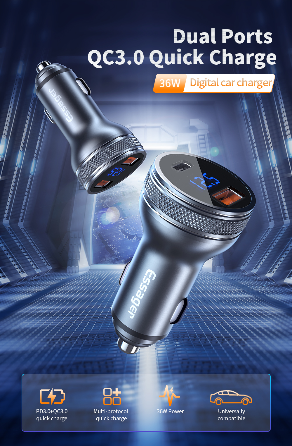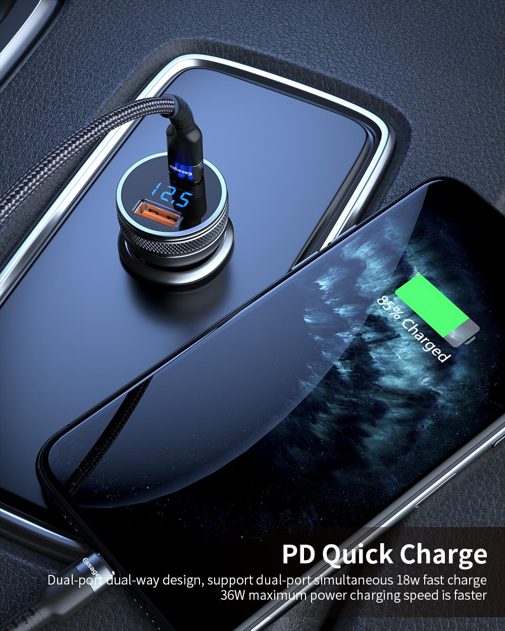 <span class="SnowProductCharacteristics_SnowProductCharacteristicsItem__titleContent__534v9">Feature 2</span> QC3.0 Dual USB Car Charger / USB C PD3.0 Type C Type-c USB Car Charger