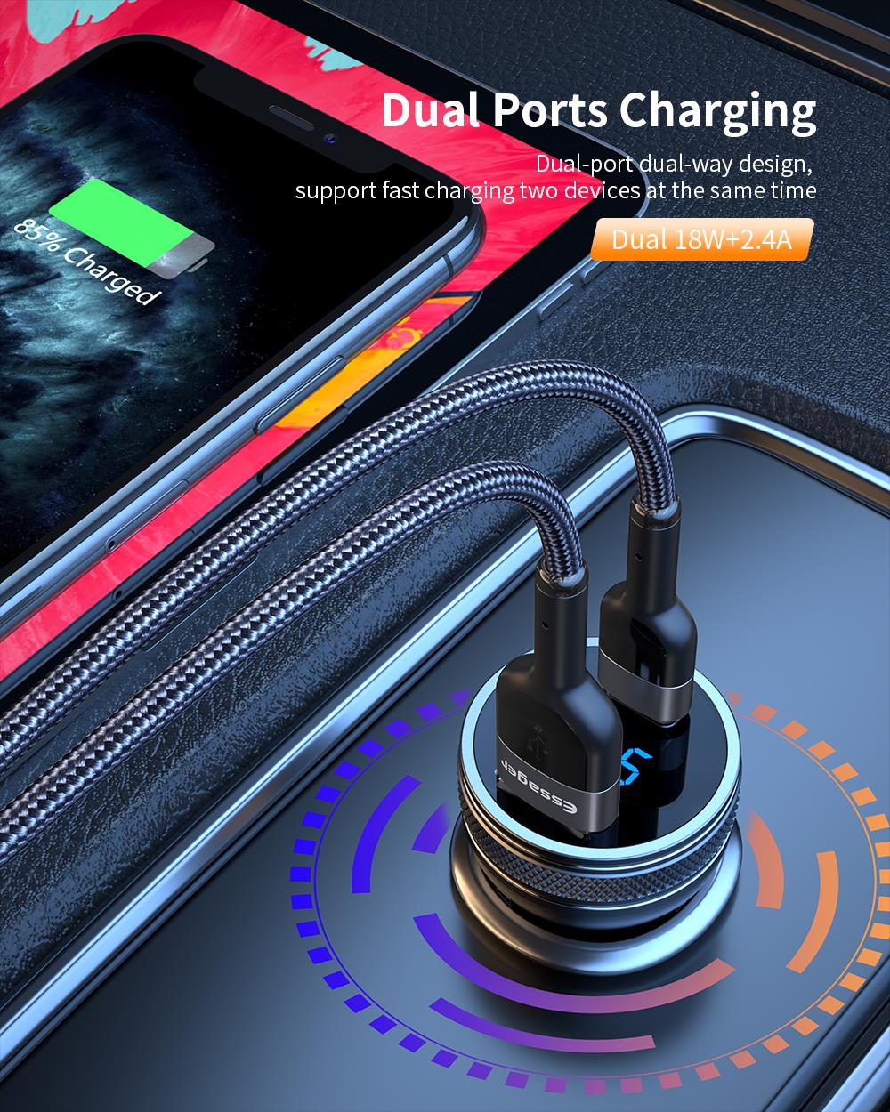 Автомобильное зарядное устройство Essager с USB-портом, 36 Вт, быстрая зарядка 3,0