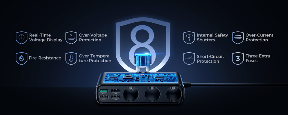 • 【Множественная защита безопасности】Встроенный сменный безопасный предохранитель адаптера автомобильного зарядного устройства USB C (поставляется с запасным предохранителем * 2) предотвращает перегрузку по току, перенапряжение и короткое замыкание. Многопортовый автомобильный адаптер зарядного устройства JOYROOM официально сертифицирован CE, FCC и RoHS. Если у вас сломан адаптер прикуривателя или он не подходит к вашему автомобилю, свяжитесь с нами напрямую, чтобы найти лучшее решение. (Что вы получаете: 1 * USB-зарядное устройство прикуривателя, 1 * Руководство пользователя, 1 * Липучка, 2 * запасной предохранитель)