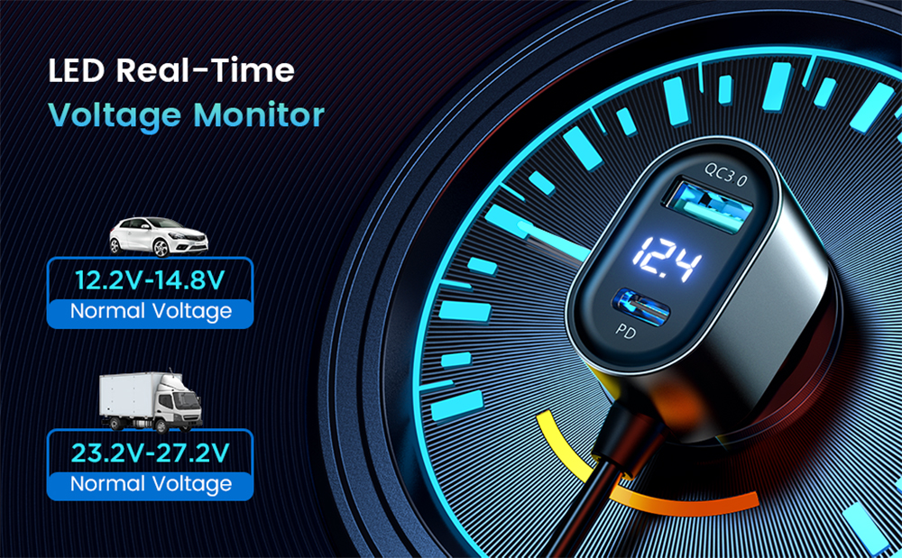 • 【Светодиодный индикатор напряжения】Автомобильное зарядное устройство JOYROOM USB C Быстрая зарядка со светодиодным дисплеем напряжения в реальном времени контролирует выход автомобильного аккумулятора, светодиодный дисплей будет мигать, чтобы напомнить водителю, что напряжение автомобильного аккумулятора слишком высокое или слишком низкое, что обеспечит вам безопасное вождение [нормальный диапазон напряжения 12 В: 11,5 В ~ 14,9 В; нормальный диапазон напряжения 24 В: 23,1 В ~ 27,3 В]