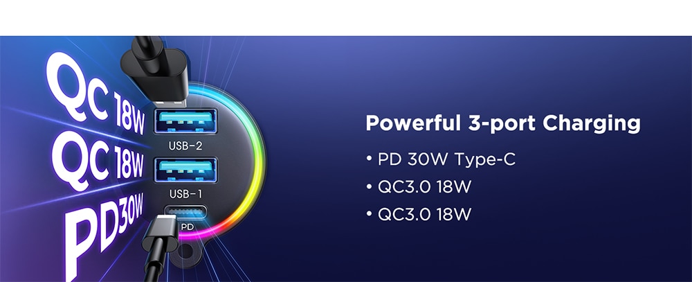 • PD и QC 3,0:Испытайте быструю скорость зарядки с протоколами PD и QC 3,0.