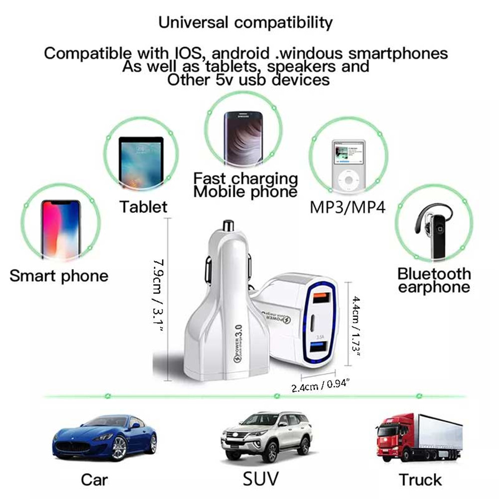 Автомобильное зарядное устройство 12 В типа C USB Адаптер для быстрой зарядки Технические характеристики: