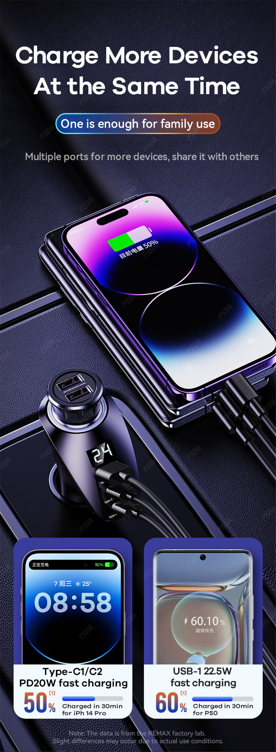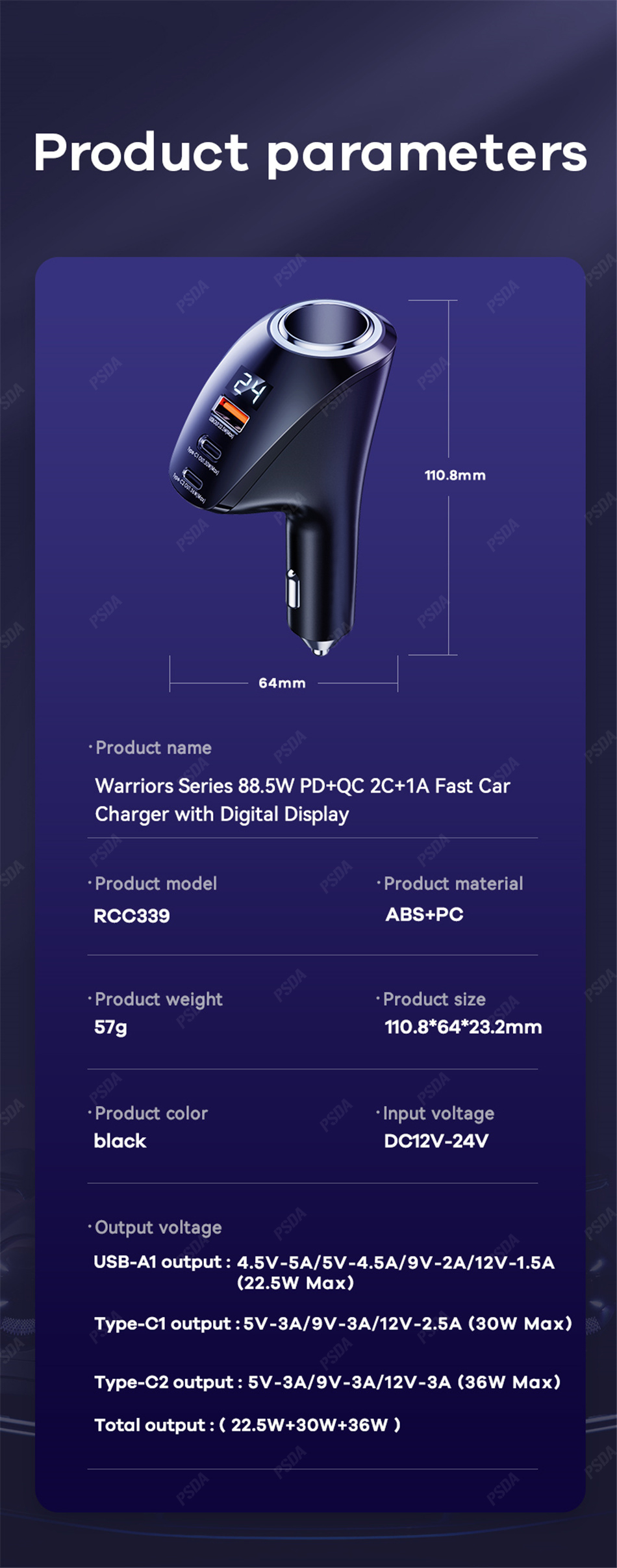 Автомобильное зарядное устройство PSDA, 150 Вт