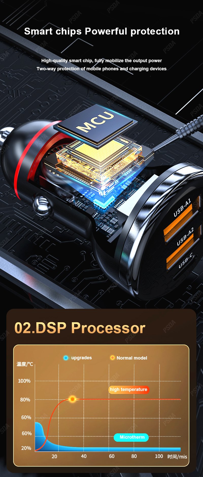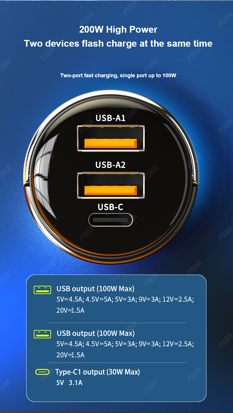 Автомобильное зарядное устройство PSDA 3D, 230 Вт