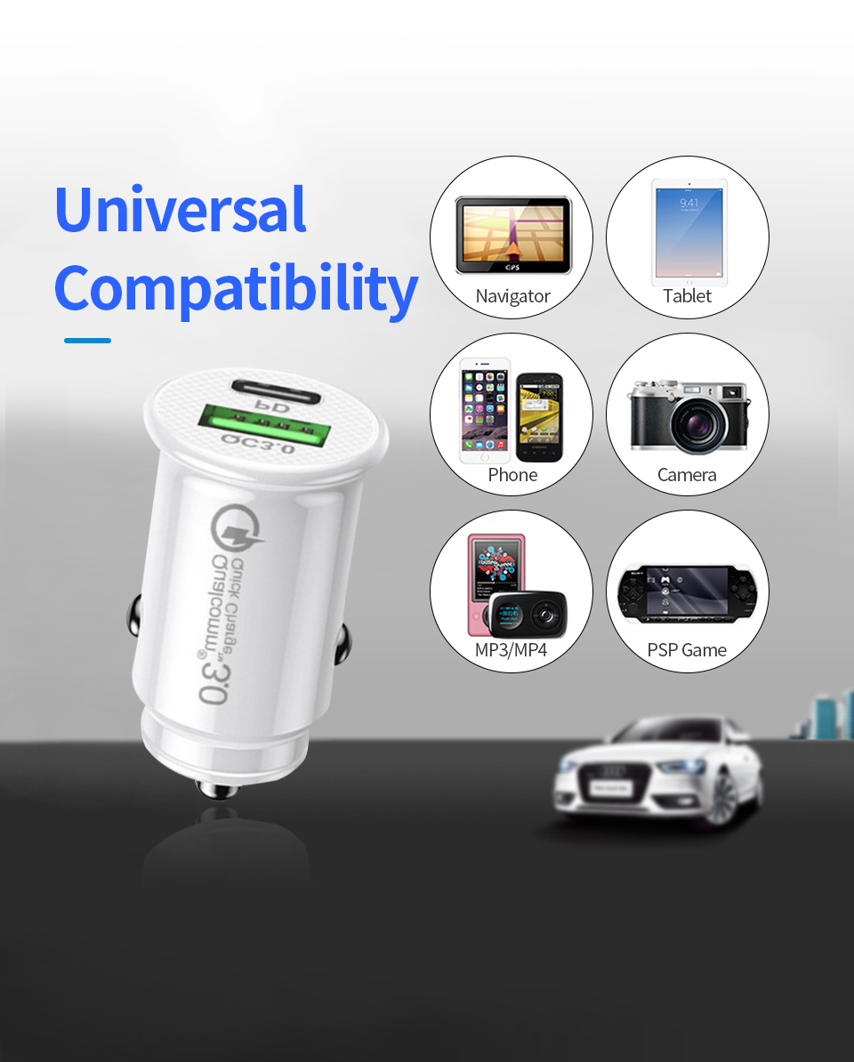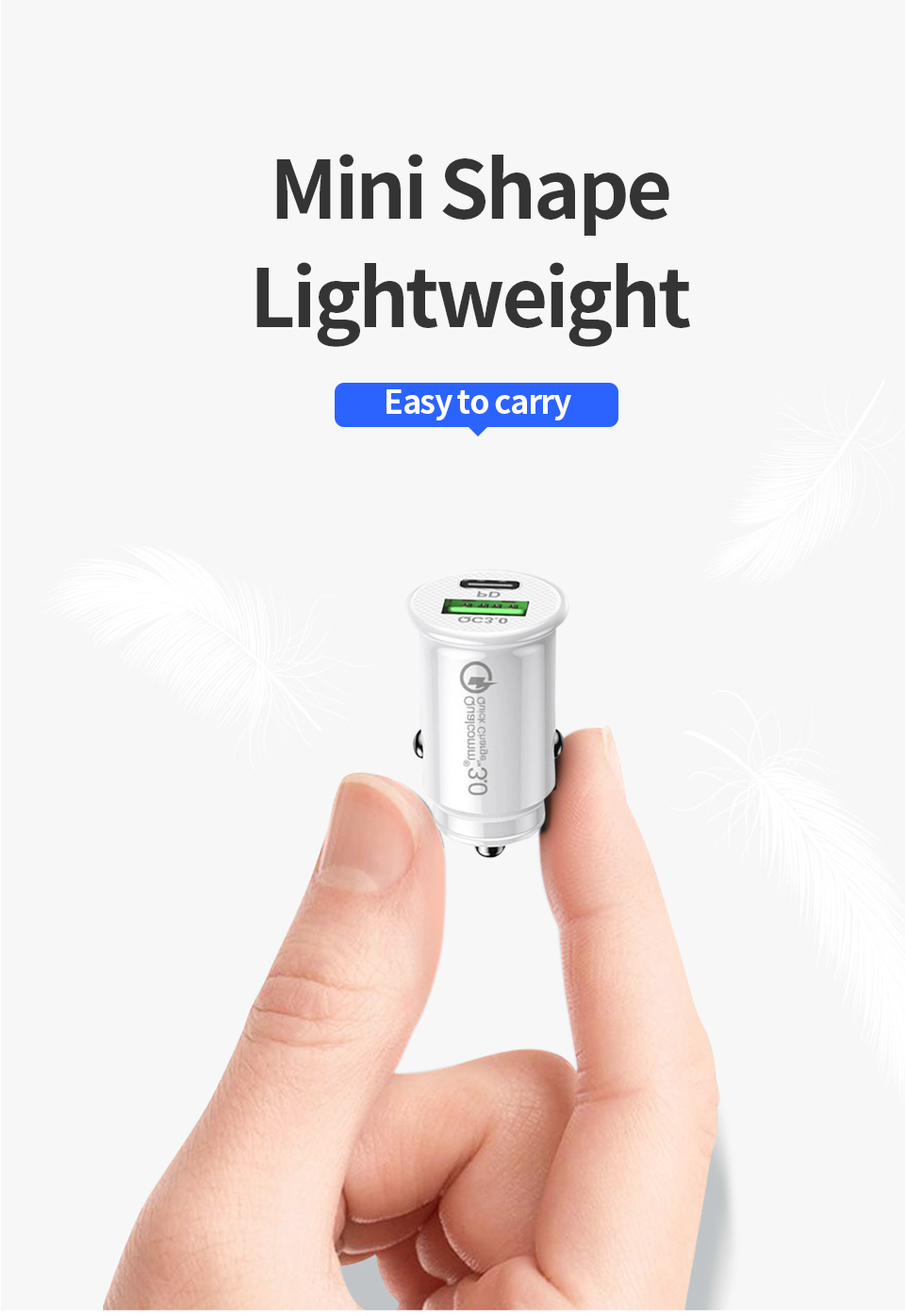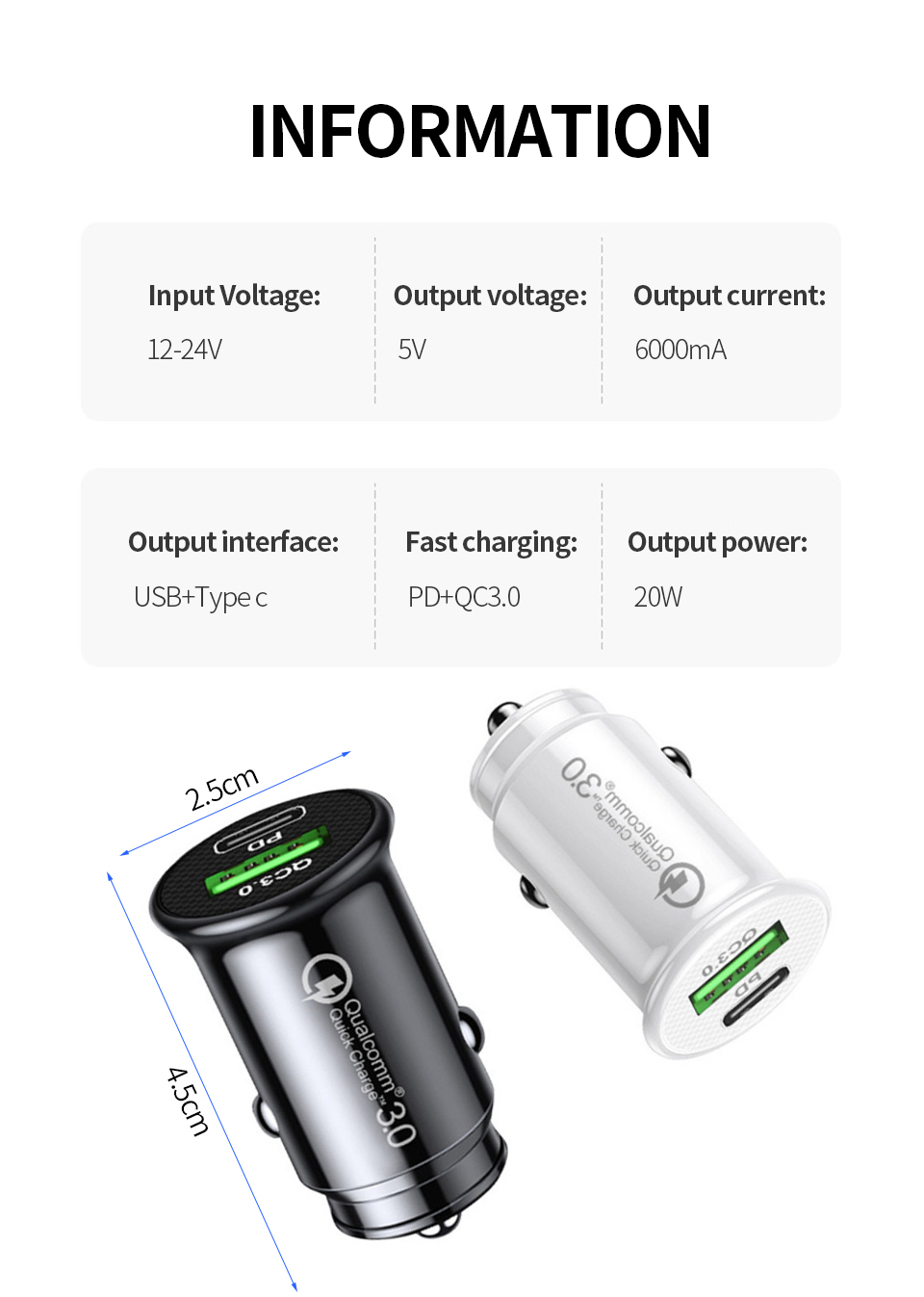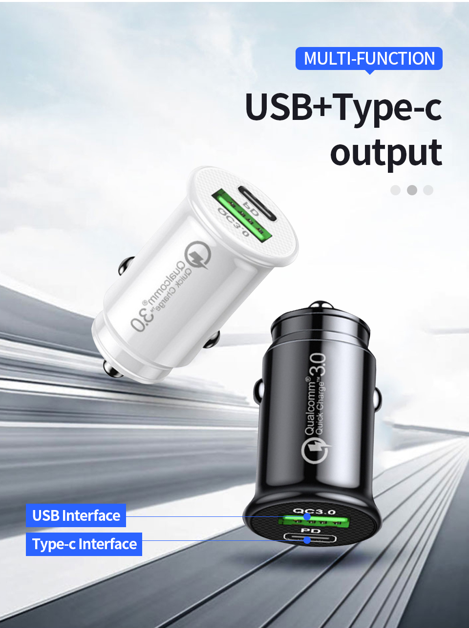 Автомобильное зарядное устройство QC3.0 Быстрая зарядка мини-слот для автомобильного прикуривателя Белый Черный PD 20 Вт USB Type C порт зарядка мобильный телефон