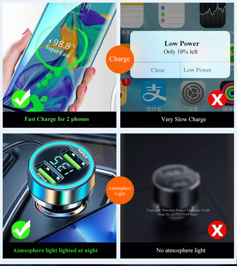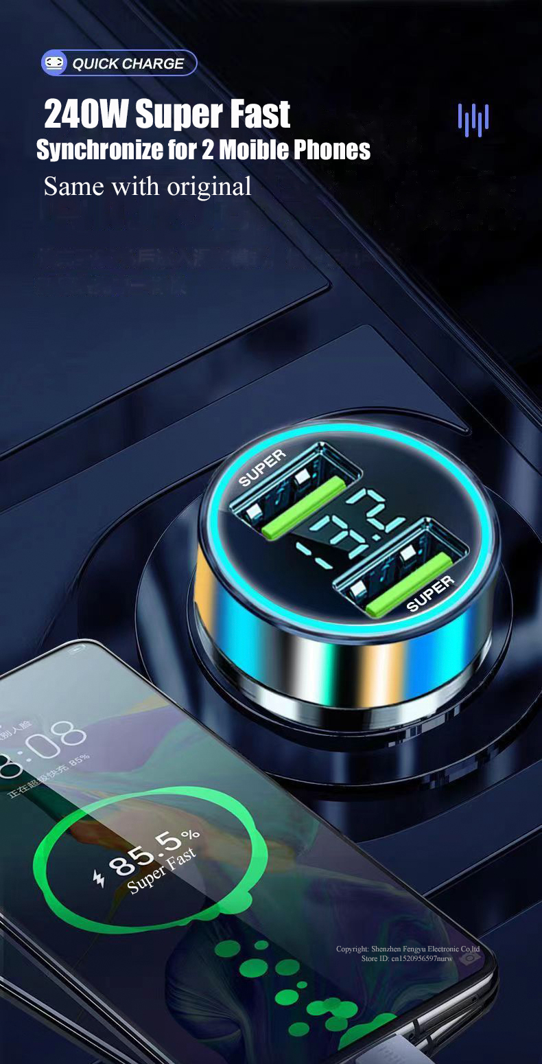 Автомобильное зарядное устройство с 2 USB-портами, 240 Вт, для iPhone 14 Pro Max 13 Oneplus Huawei OPPO Samsung Xiaomi