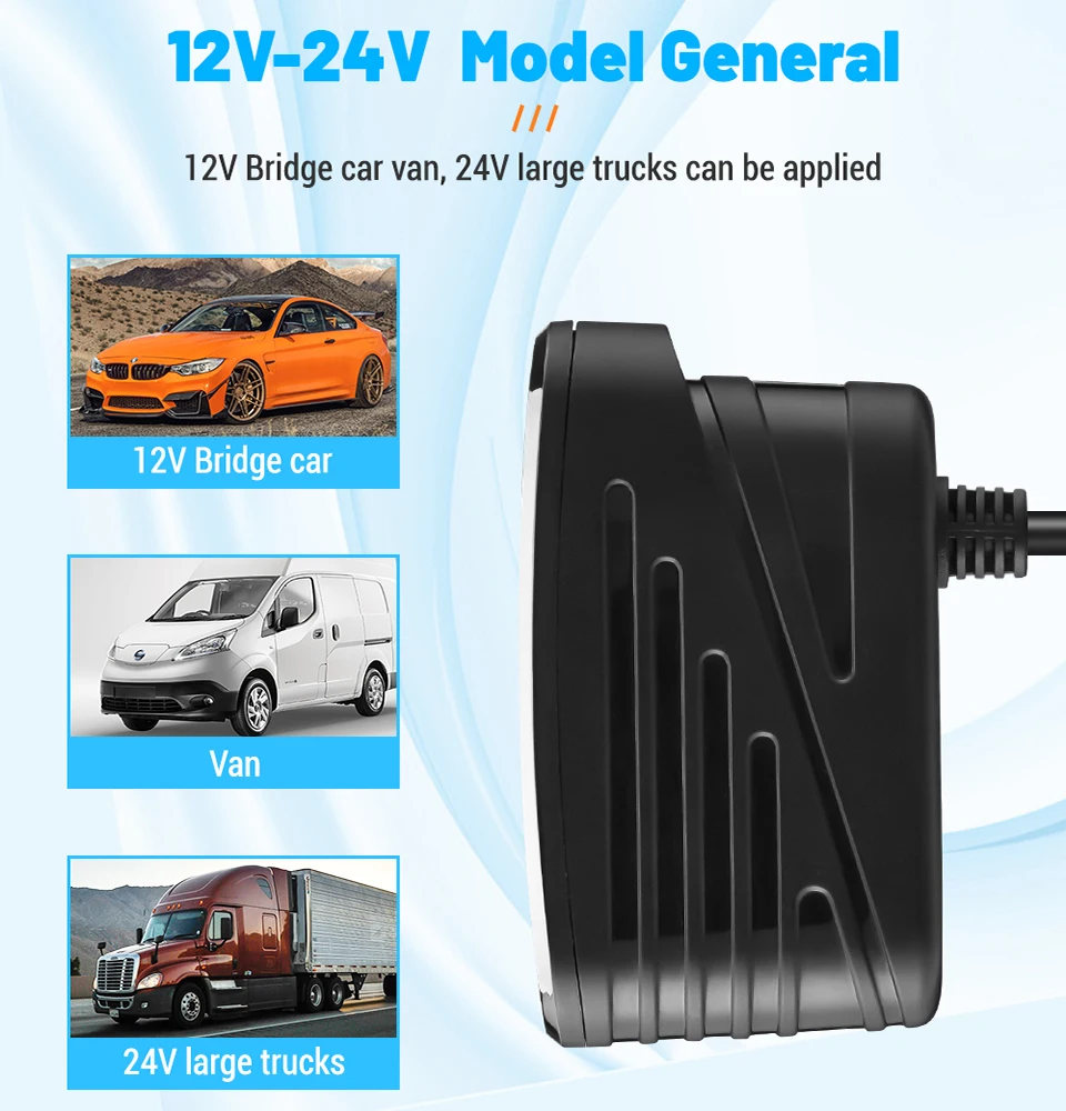 • Со светодиодным индикатором сделайте его проще в использовании. Продукт имеет функцию индикации напряжения, которая может контролировать напряжение аккумуляторной батареи автомобиля и делать его более безопасным в использовании.