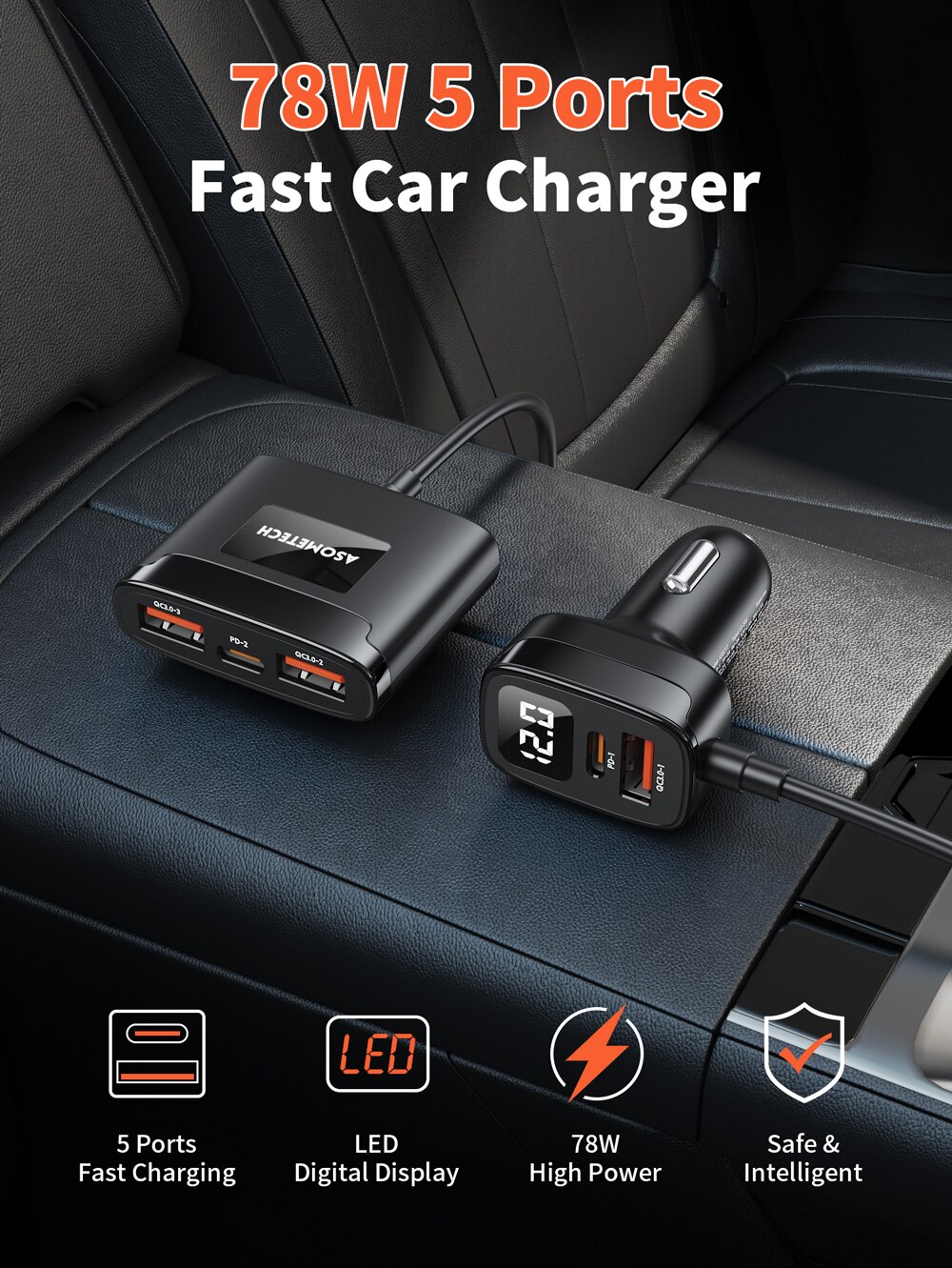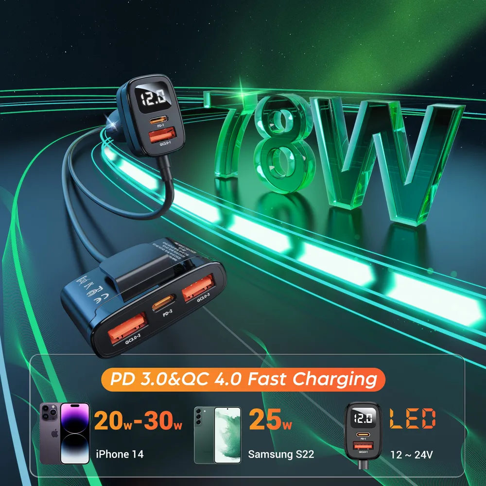 78 Вт 5 в 1 Автомобильное быстрое зарядное устройство