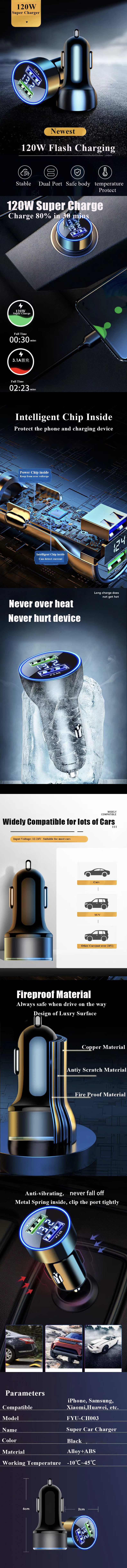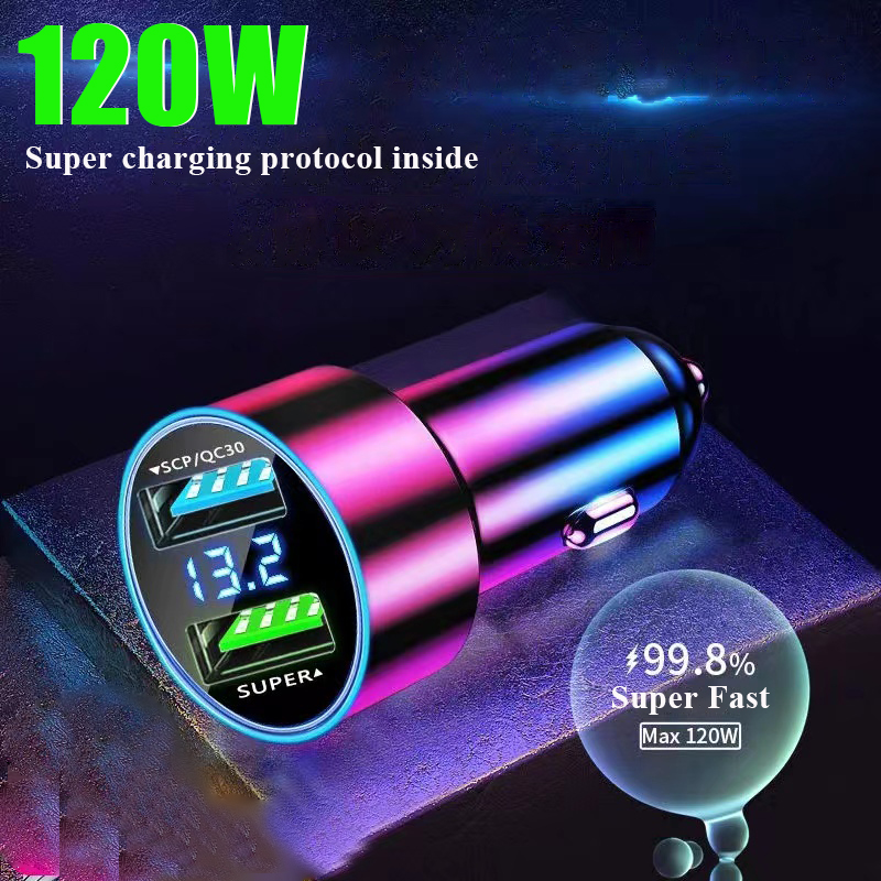 Автомобильное зарядное устройство с двумя USB-портами, 120 Вт