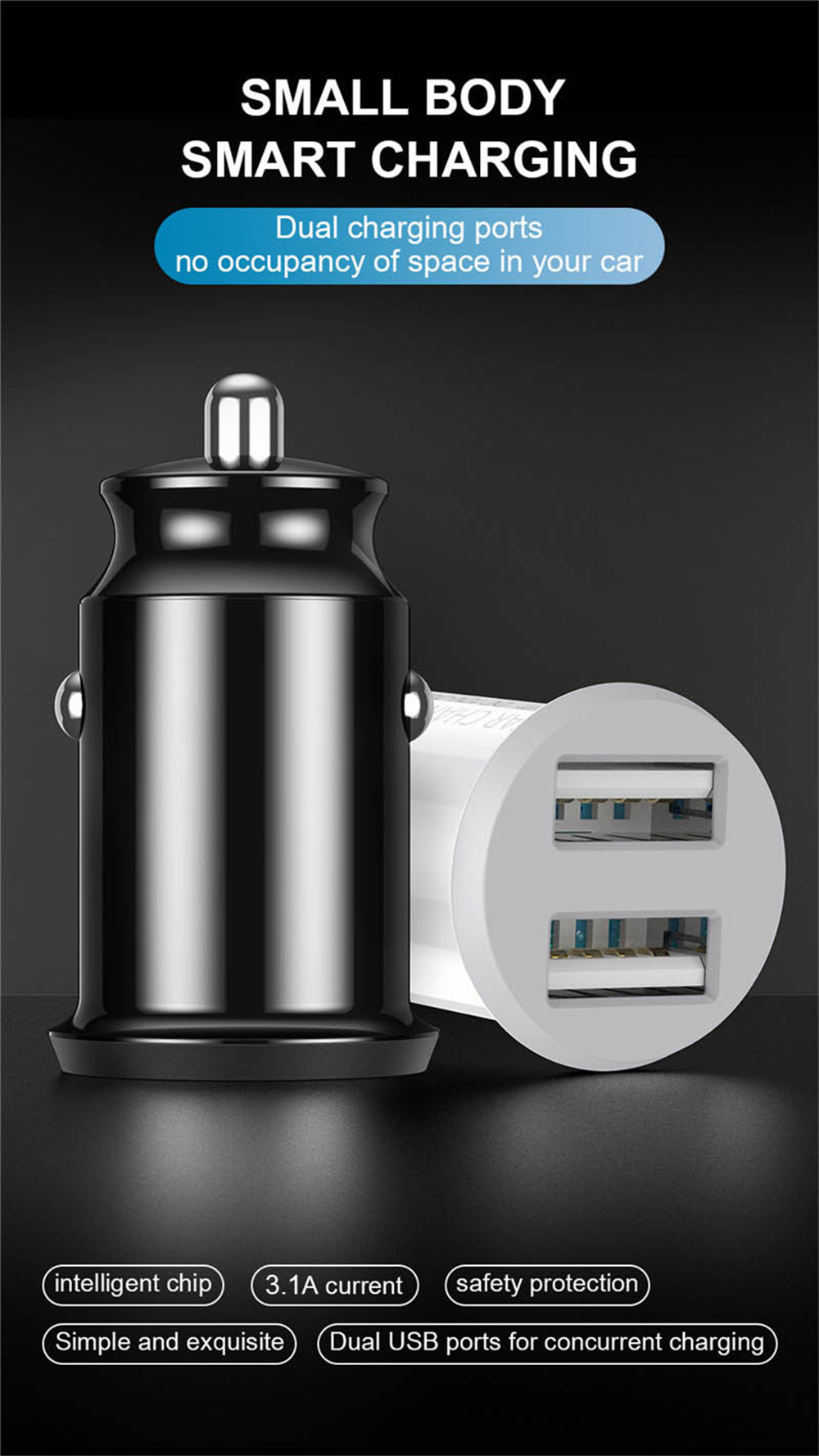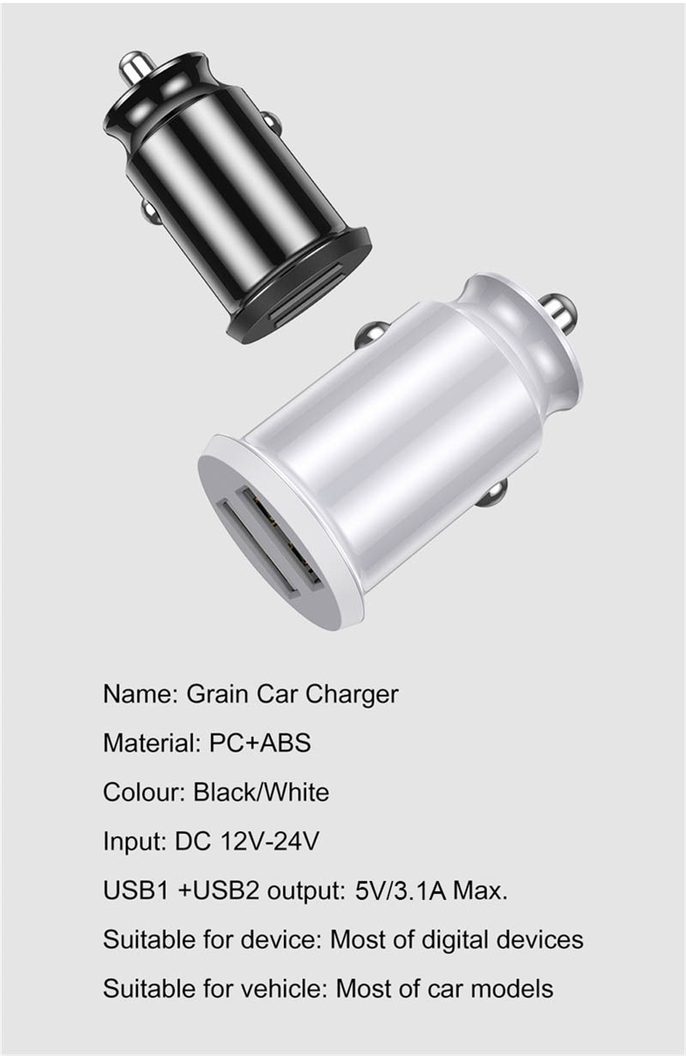 Автомобильное зарядное устройство с двумя USB-портами, 3 А