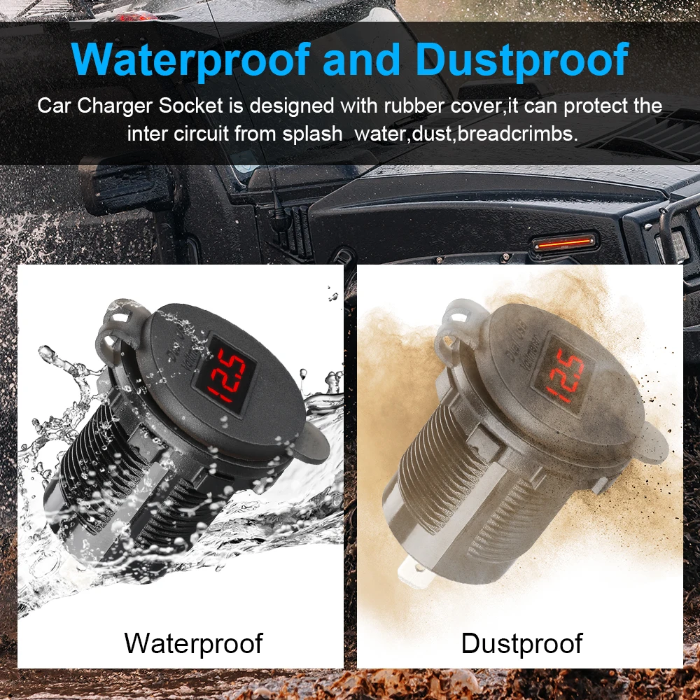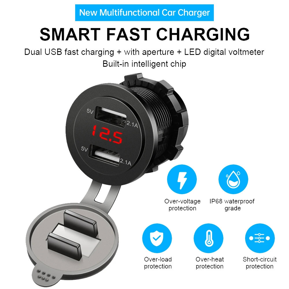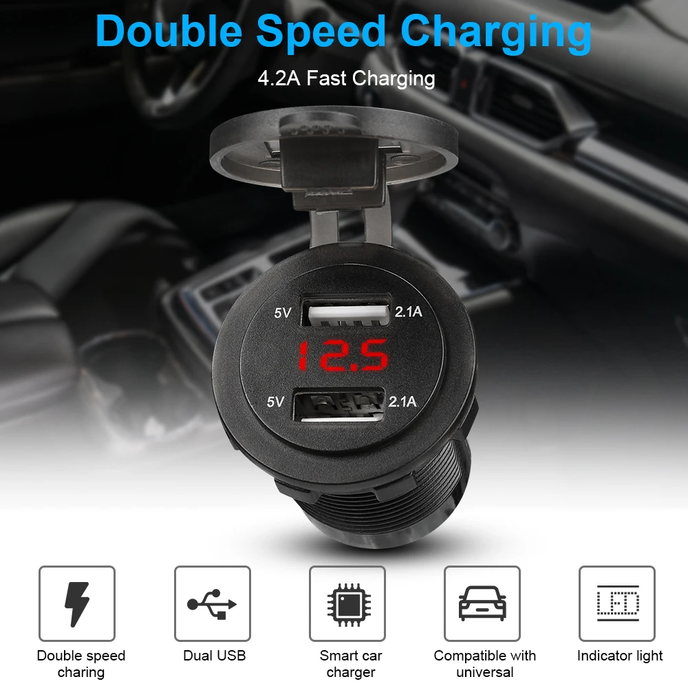 Dual USB Car Charger for Car Boat Marine Motorcycle ATV RV Camper Tractor