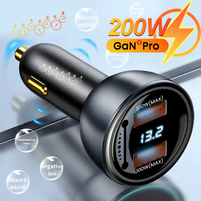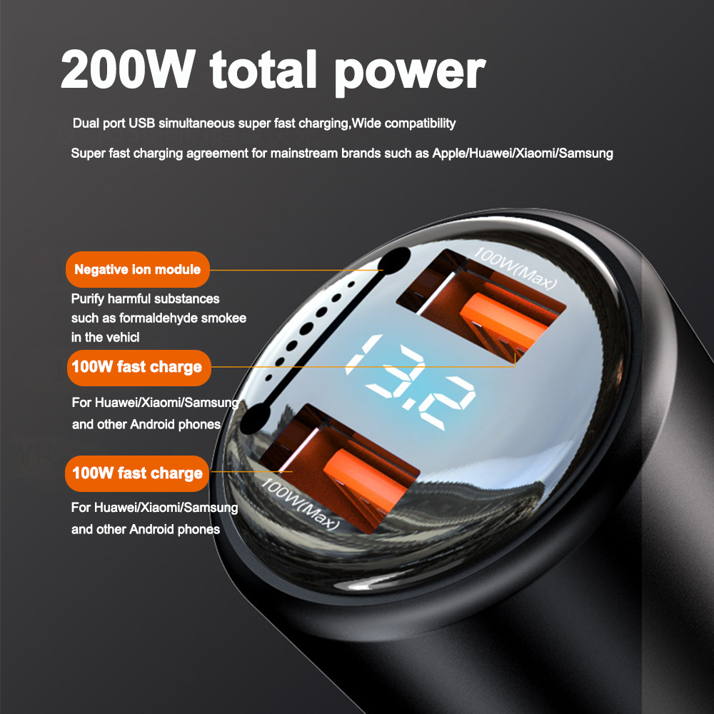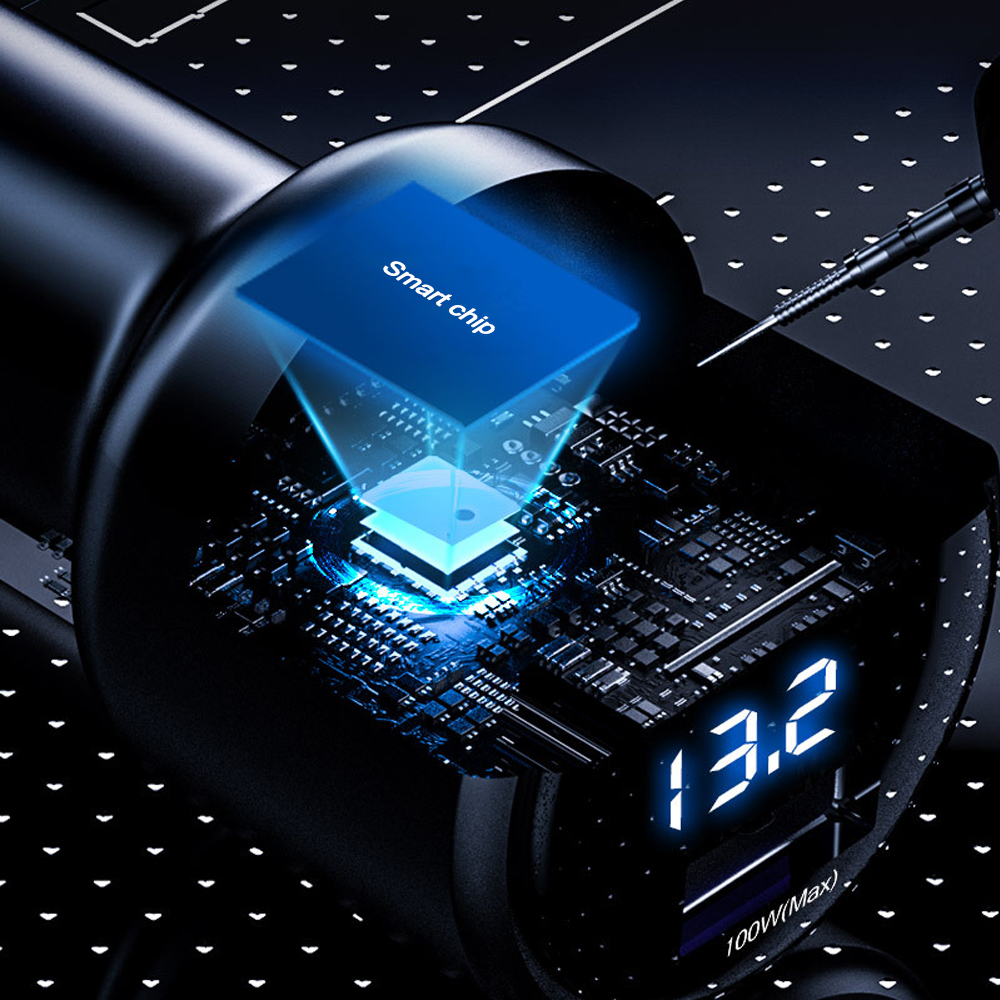 Автомобильное зарядное устройство с отображением напряжения 2 QC3.0 USB-A 100 Вт 66 Вт SuperCharge для Huawei Honor VIVO OPPO
