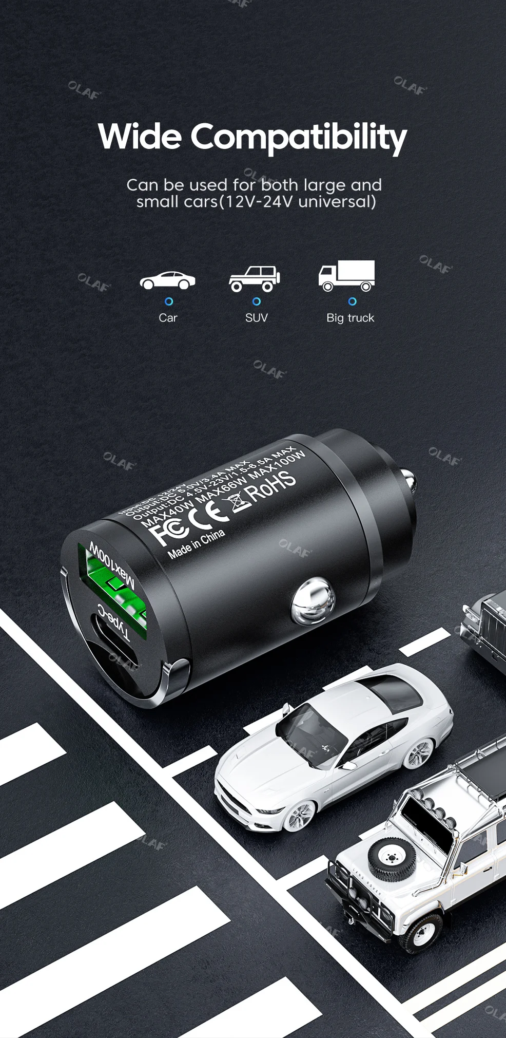 Автомобильное зарядное устройство с USB-портом и поддержкой быстрой зарядки, 100 Вт