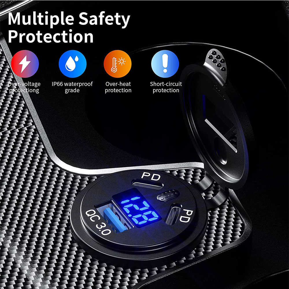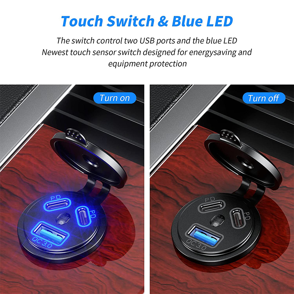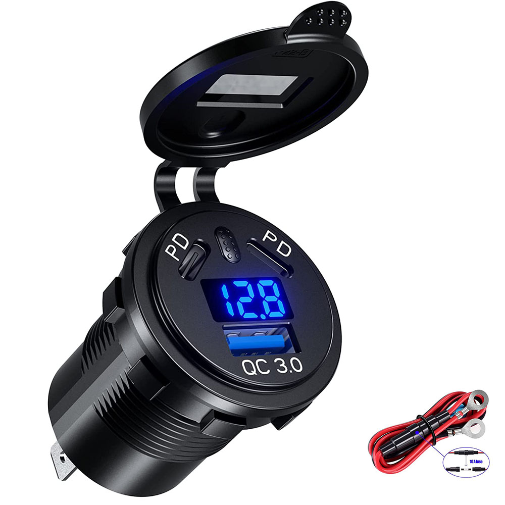 • Широкая Совместимость: Быстрая зарядка QC3.0 USB и двойной PD TYPE-C Комплект для сборки зарядного устройства Подходит для автомобилей, лодок, морских судов, гольф-каров, квадроциклов, автофургонов и т. Д. постоянного тока 12 В-24 В. Этот USB-разъем подходит для зарядки мобильных телефонов, планшетов, блоков питания, контроллеров видеоигр, спортивных часов и другого цифрового оборудования.