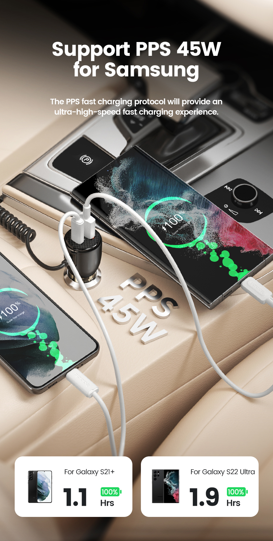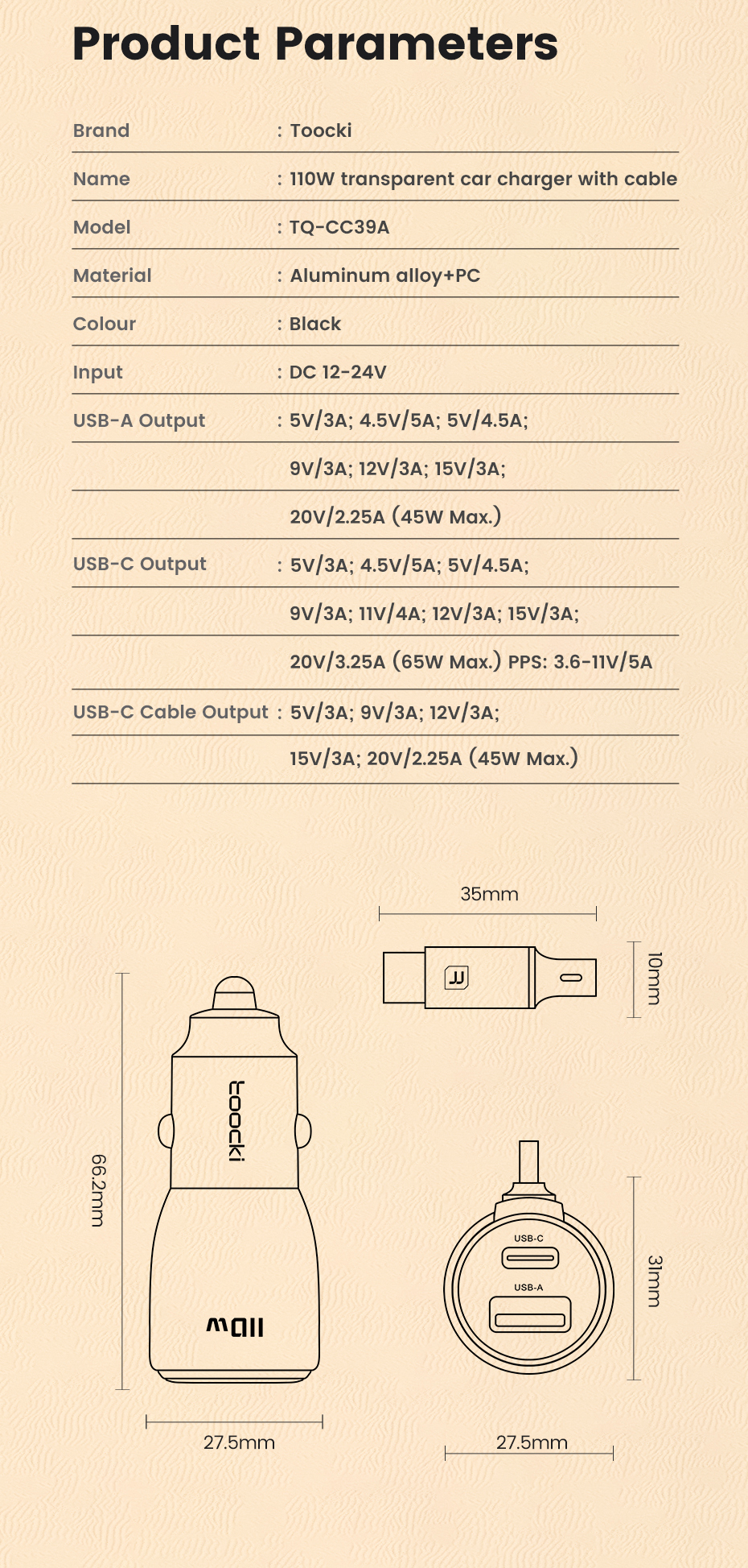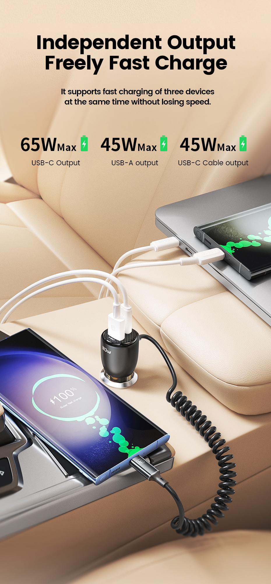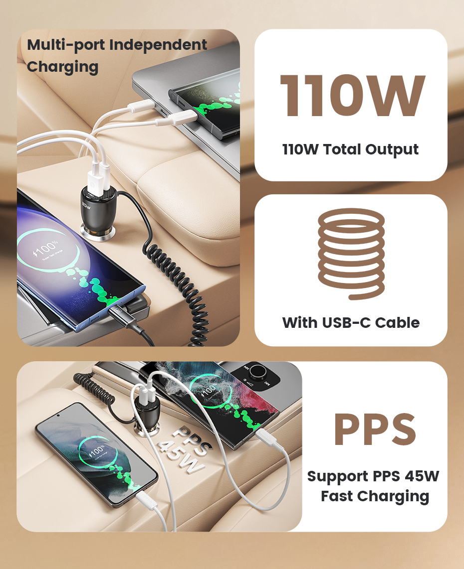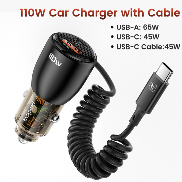 Автомобильное зарядное устройство Toocki 110 Вт QC4.0 PD3.0 PPS 65 Вт USB C