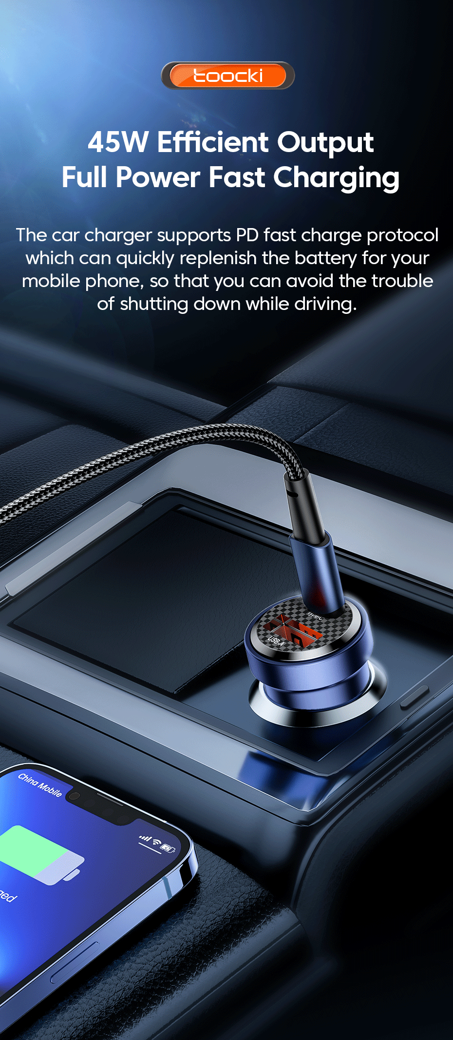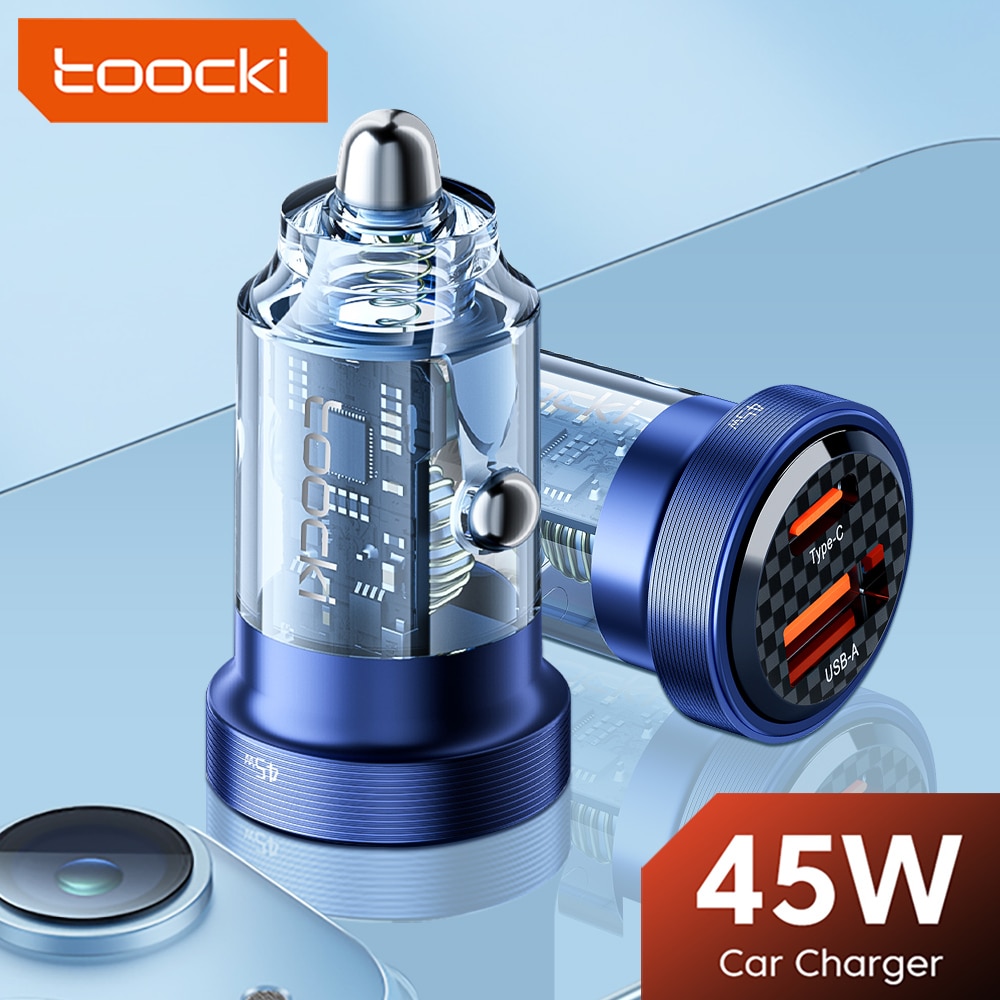 Автомобильное зарядное устройство Toocki с USB C, быстрая зарядка 45 Вт 30 Вт QC 4,0 3,0 Тип C PD, быстрая зарядка для iPhone 14 13 Pro Max Xiaomi Samsung Redmi