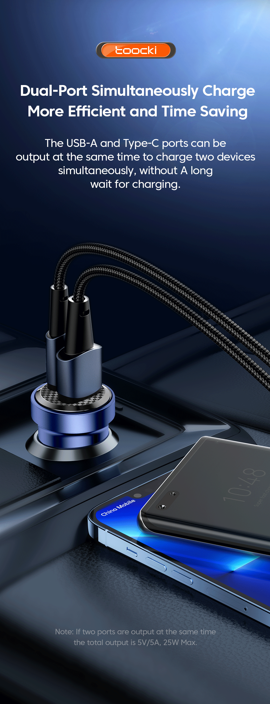 Feature 9 USB Type C Car Charger / USB-C Car Charger / Type-C Car Charger / USB-A Car Charger