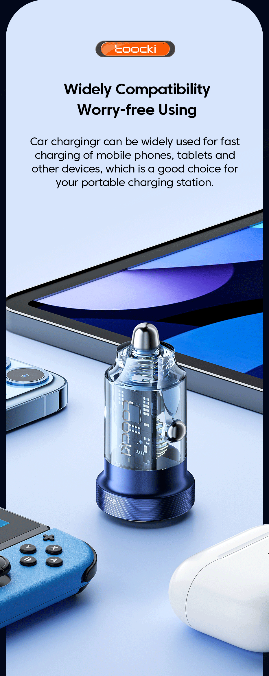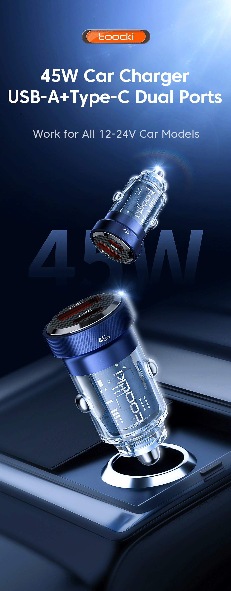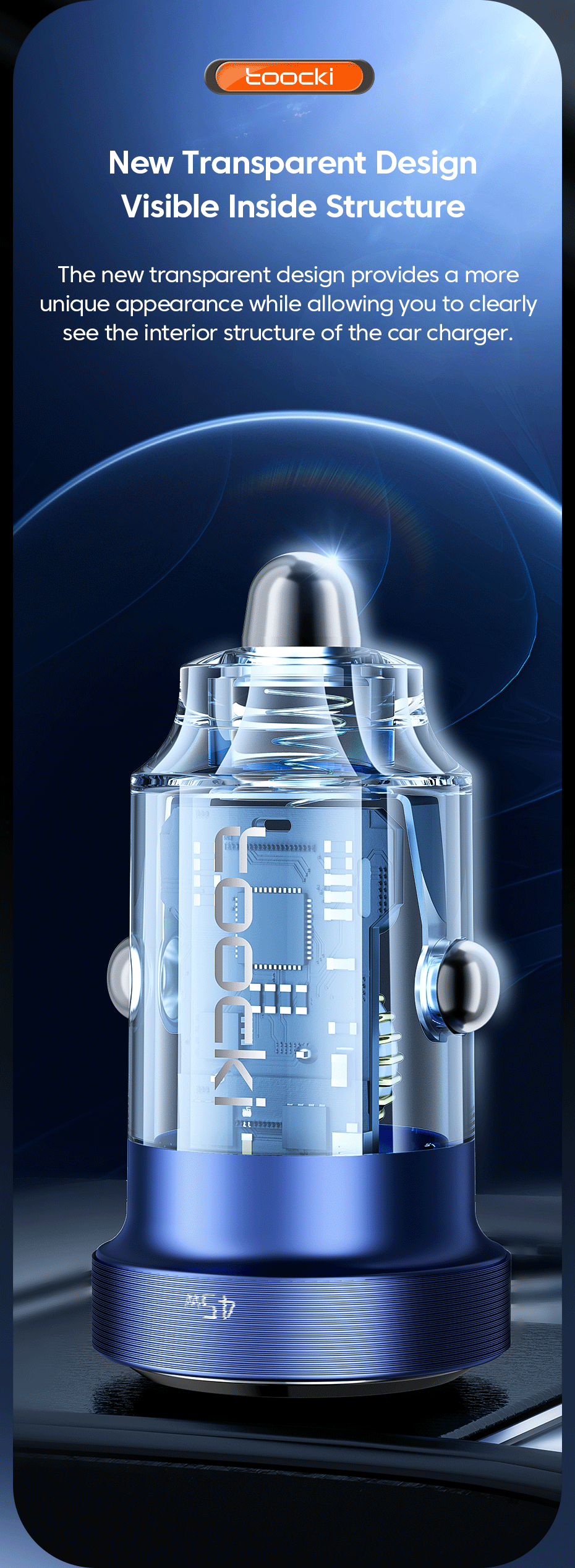 Feature 7 45W Car Fast Charger Transparent / Transparent PD Charger / Transparent USB C Charger