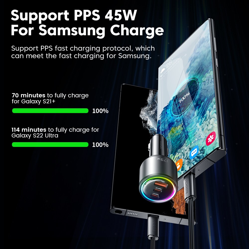 Автомобильное зарядное устройство TOocki 175 Вт USB PD3.0 QC4.0 PPS с быстрой зарядкой типа C автомобильное зарядное устройство для телефона