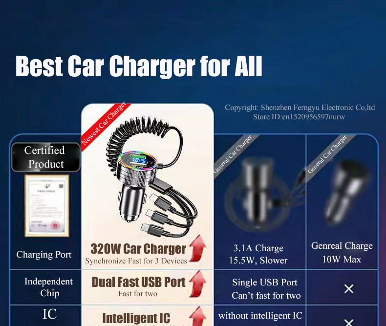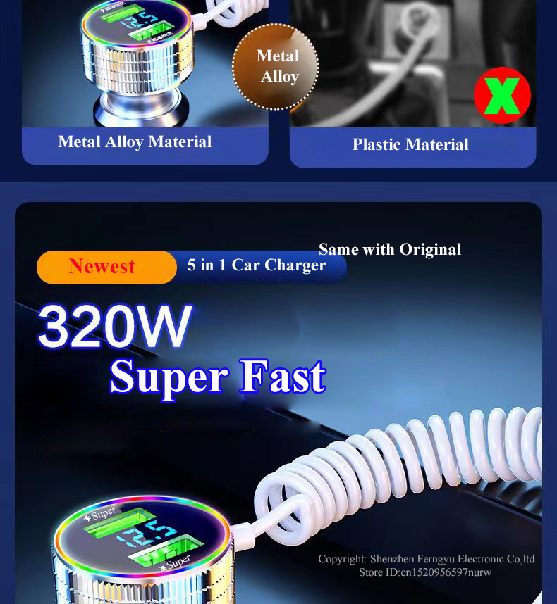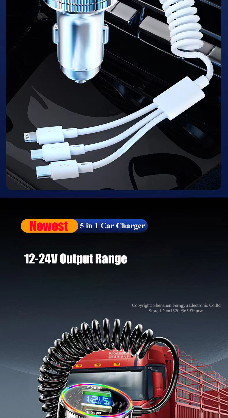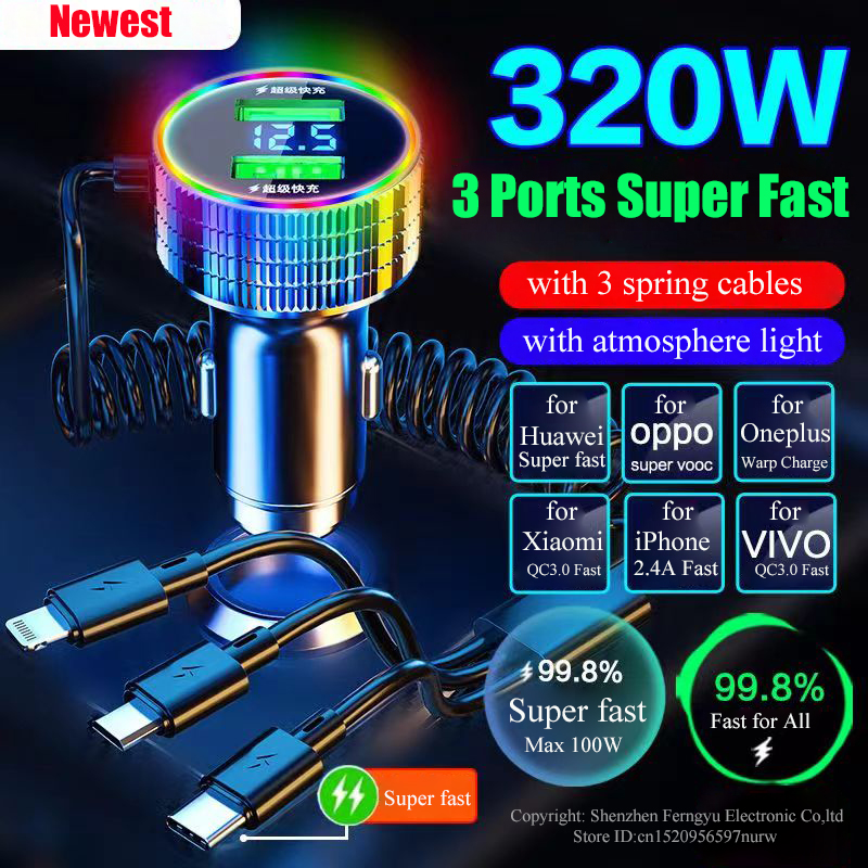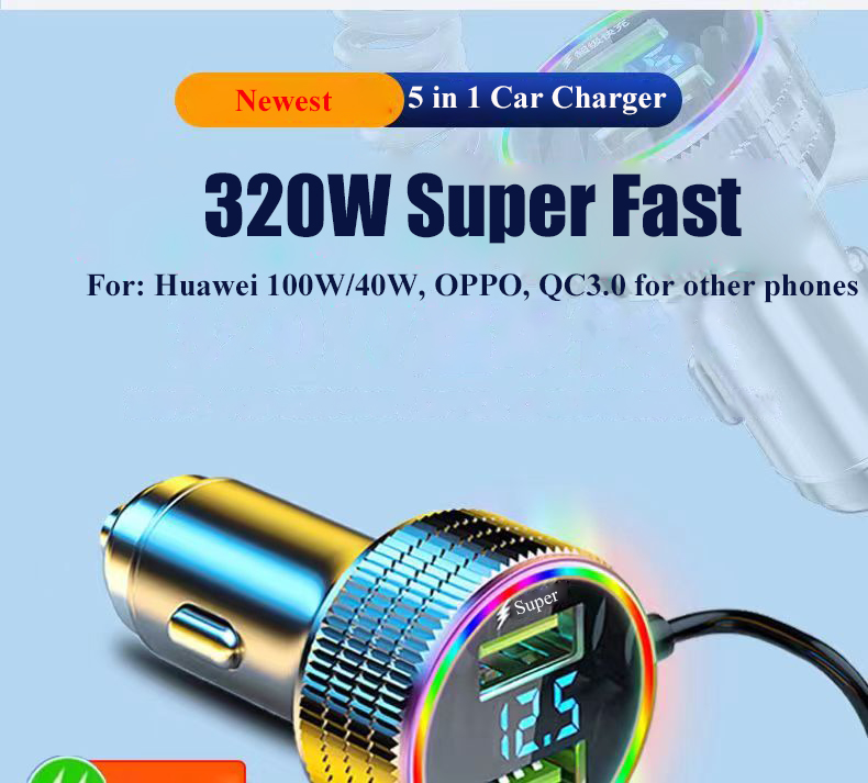 Автомобильное зарядное устройство USB 5 в 1, 320 Вт, адаптер для быстрой зарядки телефона iPhone 14 Pro Max Apple 13 12 11 Samsung Huawei OPPO Oneplus Xiaomi