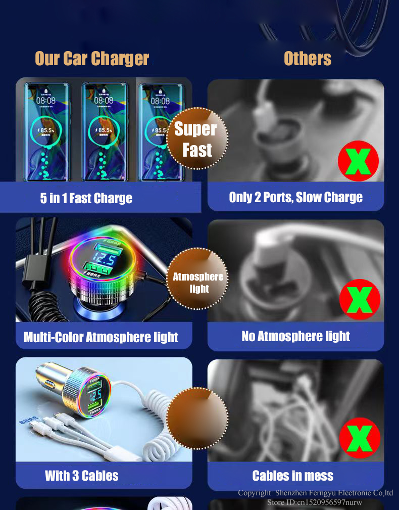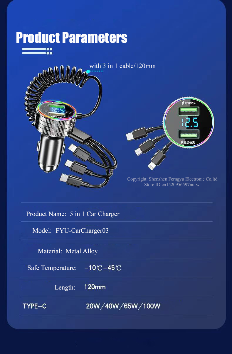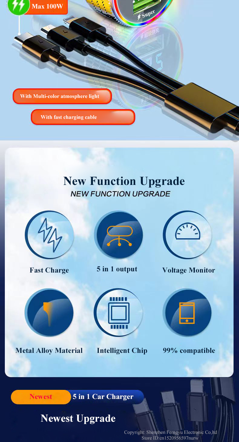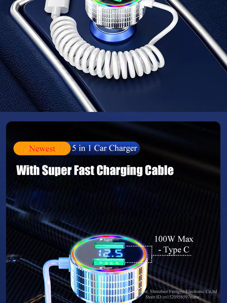 Автомобильное зарядное устройство USB 5 в 1, 320 Вт, адаптер для быстрой зарядки телефона iPhone 14 Pro Max Apple 13 12 11 Samsung Huawei OPPO Oneplus Xiaomi